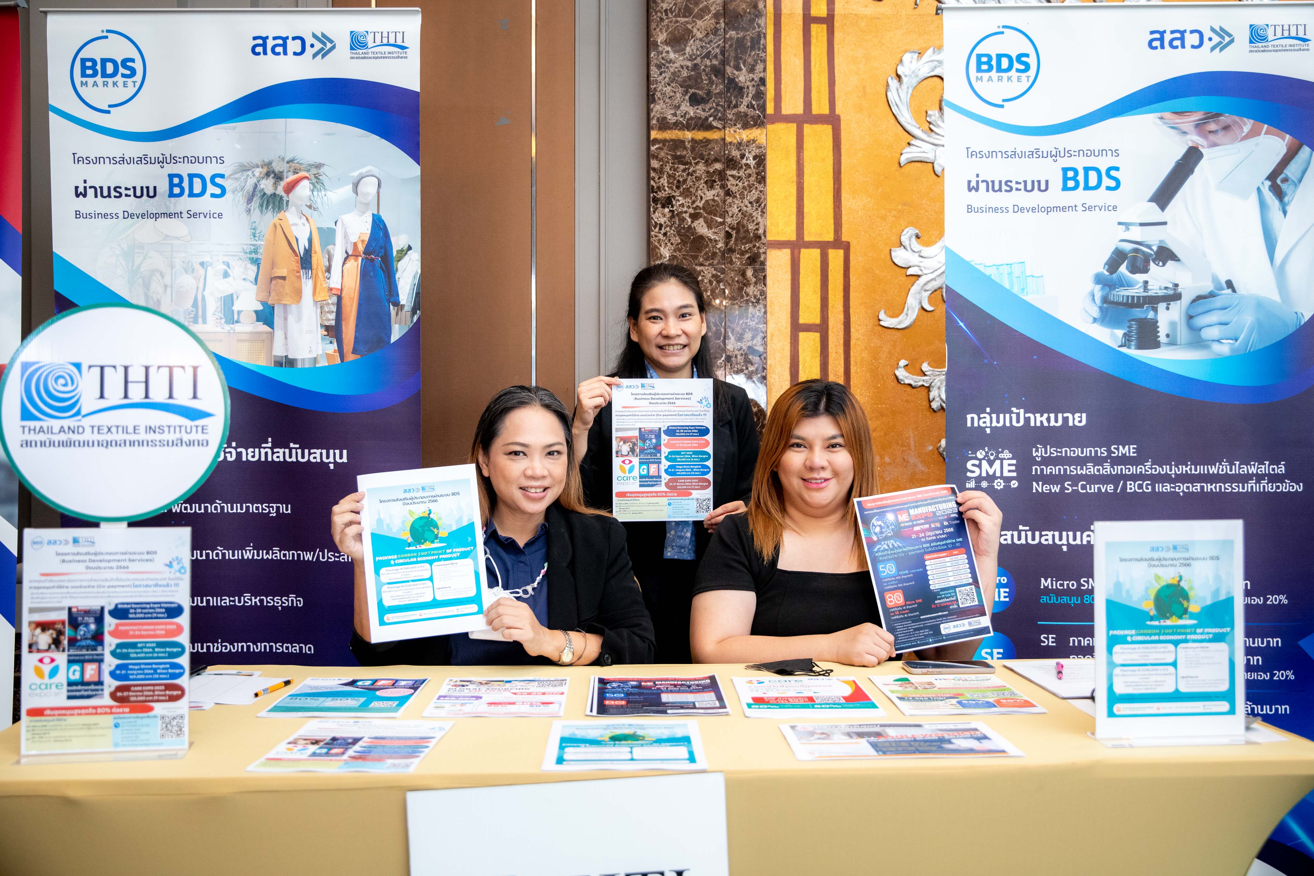 ขณะที่ ขณะที่ นางสุดา ยังให้ผล ผู้อำนวยการฝ่ายพัฒนาอุตสาหกรรม สถาบันพัฒนาอุตสาหกรรมสิ่งทอ ในฐานะหน่วยพันธมิตรให้บริการหรือ BDSP กล่าวถึงการจับมือกับ สสว. ว่า สถาบันฯ ได้ให้ความสนับสนุนผู้ประกอบการ เพื่อการพัฒนาตามความเชี่ยวชาญของเรา โดยเฉพาะด้านสิ่งทอ แบบครบวงจร ทั้งการจัดอบรมให้ความรู้ และด้านห้องปฏิบัติการทดสอบด้วยเครื่องมือที่ทันสมัยและใหญ่ที่สุดแห่งหนึ่งในอาเซียน เราสามารถทดสอบวัสดุสิ่งทอ สินค้าสำเร็จรูป เส้นด้าย เส้นใย สิ่งทอ เสื้อผ้า สินค้าที่เป็นมิตรต่อสิ่งแวดล้อม ภาชนะและเครื่องใช้พลาสติกสำหรับอาหาร รวมมากกว่า 500 รายการ ตามมาตรฐานผลิตภัณฑ์อุตสาหกรรม (มอก.) มาตรฐานสากล มาตรฐานโรงงาน มาตรฐานผู้ซื้อผู้ขาย ที่จำหน่ายภายในประเทศและเพื่อการส่งออก รวมทั้งมาตรฐาน ฉลากคาร์บอนฟุตพริ้นท์ ฉลาก Smart Fabric ฉลากคุณภาพผลิตภัณฑ์สิ่งทอไทย (Thailand Textiles Tag) ฉลาก Cool Mode ฉลากเสื้อประหยัดพลังงานเบอร์ 5 มาตรฐานผลิตภัณฑ์สิ่งทอด้านความปลอดภัย (S-Mark) เป็นต้น