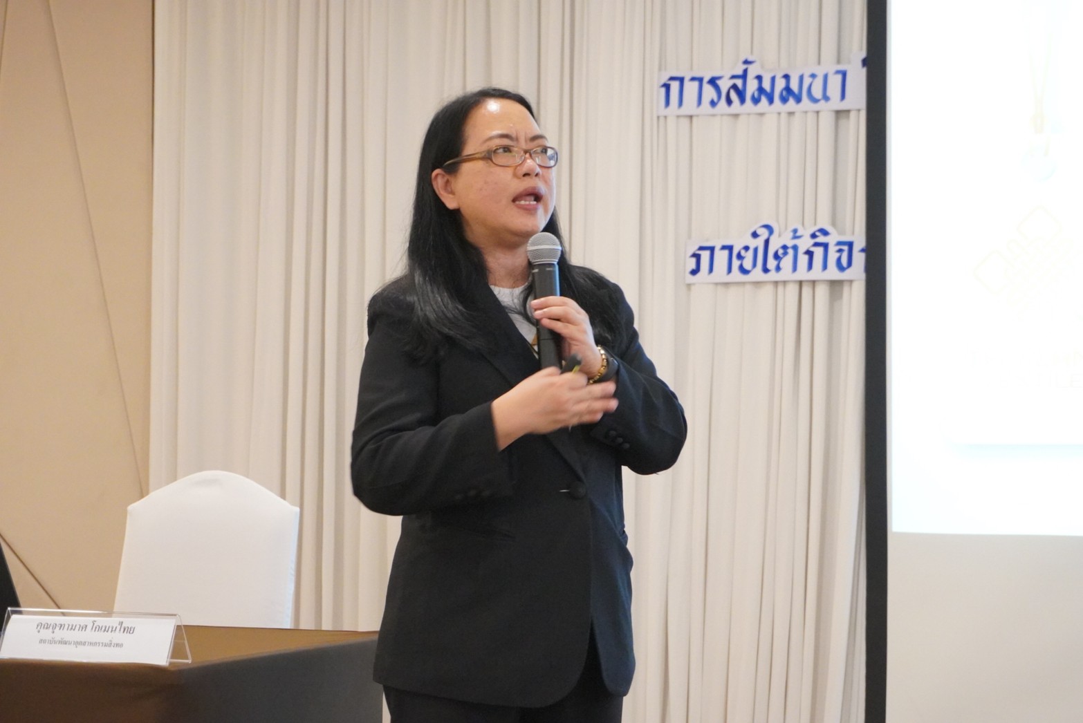 คุณจุฑามาศ โกเมนไทย ผู้จัดการแผนกข้อมูลอุตสาหกรรม สถาบันพัฒนาอุตสาหกรรมสิ่งทอ