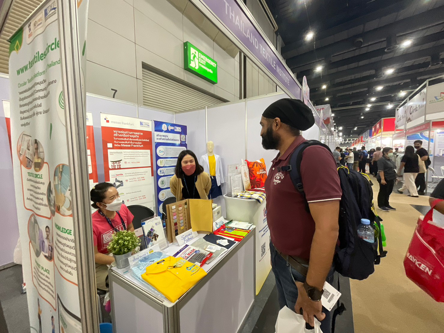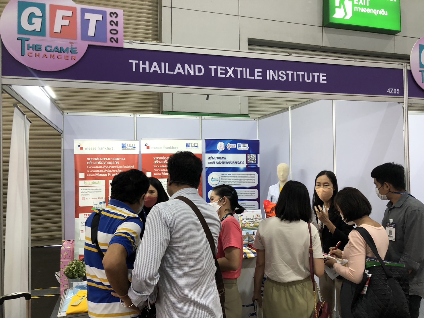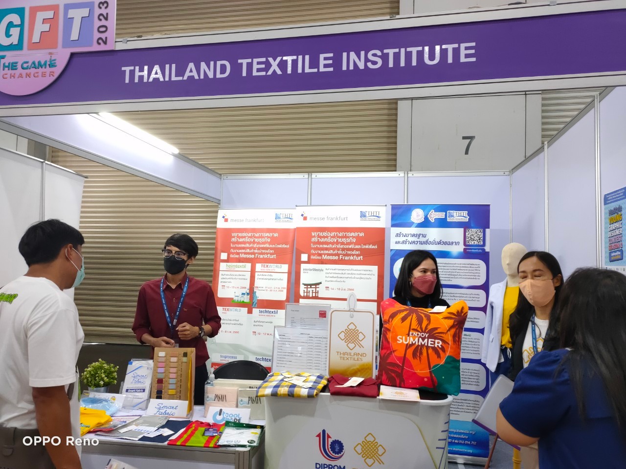โดยสถาบันพัฒนาอุตสาหกรรมสิ่งทอได้ร่วมจัดบูธในส่วนงาน GFT 2023 ให้คำแนะนำปรึกษา ด้านการทดสอบ มต่อยอดธุรกิจสิ่งทอ พร้อมจัดแสดงผลิตภัณฑ์ตัวอย่างที่ได้รับฉลากสินค้าในด้านสิ่งทอ อาทิ ฉลากคุณภาพผลิตภัณฑ์สิ่งทอไทย (Thailand Textiles Tag) ฉลาก CoolMode ฉลากเสื้อเบอร์ 5 ฉลาก Smart Fabric เป็นต้น โดยได้รับความสนใจจากผู้ประกอบการเข้ามาสอบถามเป็นจำนวนมาก