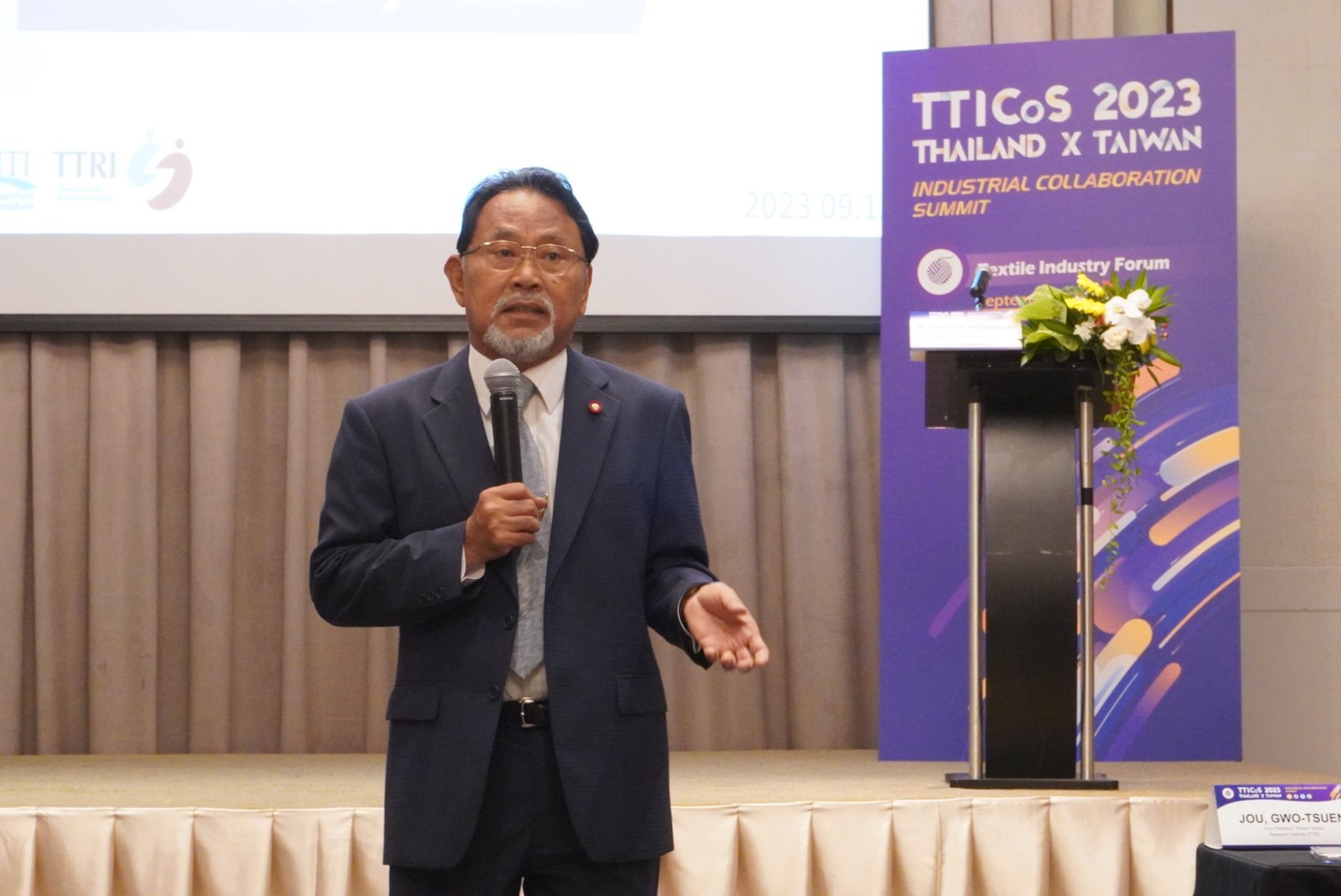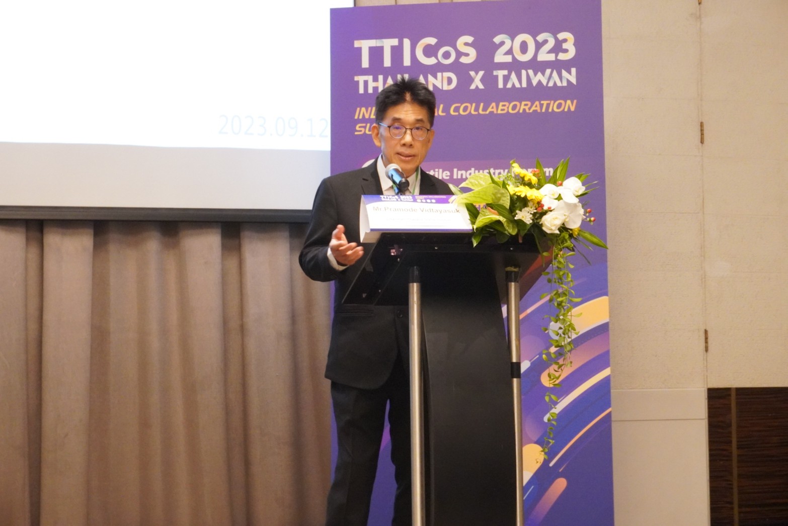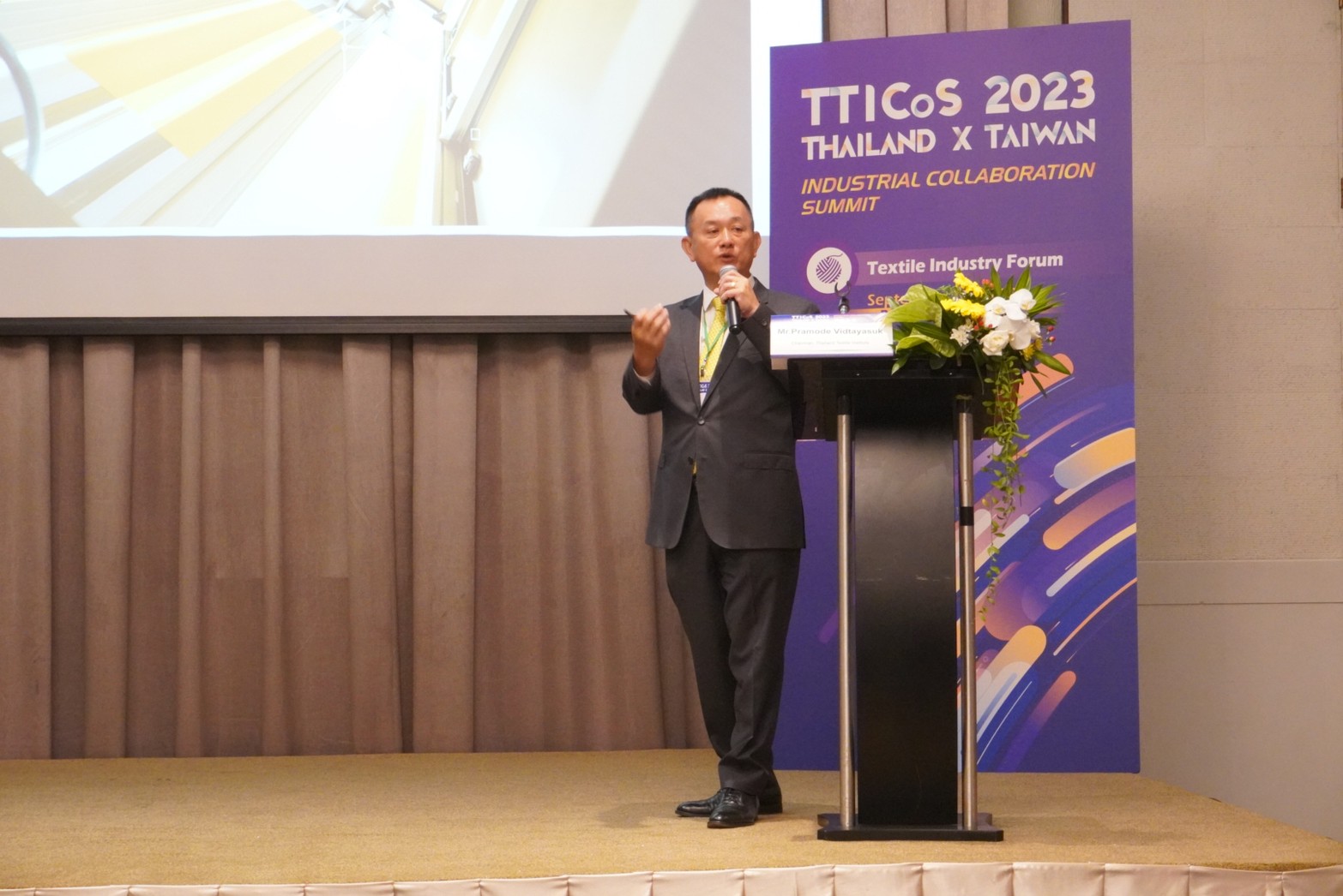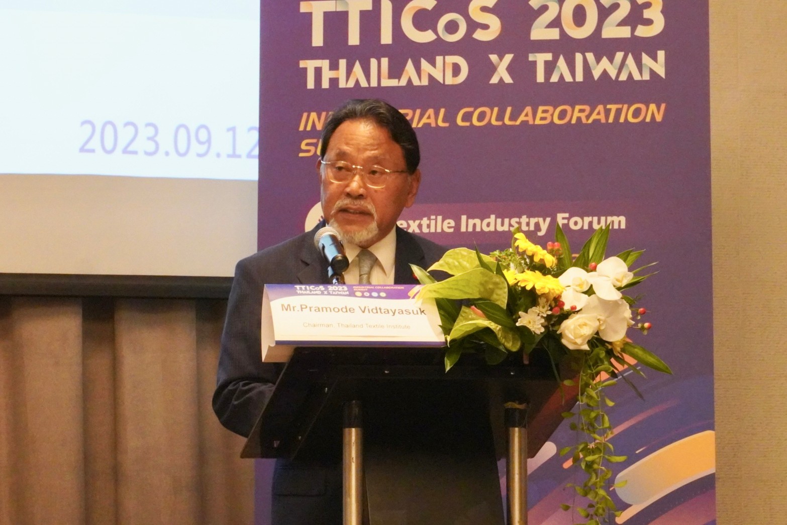 12 กันยายน 2566 นายเกรียงไกร เธียรนุกุล ประธานสภาอุตสาหกรรมแห่งประเทศไทย (ส.อ.ท.) กล่าวเปิดงานสัมมนาความร่วมมือด้านอุตสาหกรรมไทย-ไต้หวัน (Thailand-Taiwan Industrial Collaboration Summit 2023 : TTICos2023 ) โดยได้รับเกียรติจาก Mr. Lin Chia-lung เลขาธิการสำนักประธานาธิบดีไต้หวัน Mr. Lin Chuan-Neng ผู้ช่วยรัฐมนตรี กระทรวงเศรษฐกิจ Mr. Hsieh Chi-Chia ประธานสภาอุตสาหกรรมแห่งสาธารณรัฐจีน (ไต้หวัน) และนายปราโมทย์ วิทยาสุข ประธานกรรมการสถาบันพัฒนาอุตสาหกรรมสิ่งทอ เข้าร่วมงาน ณ โรงแรม เดอะ สุโกศล กรุงเทพฯ