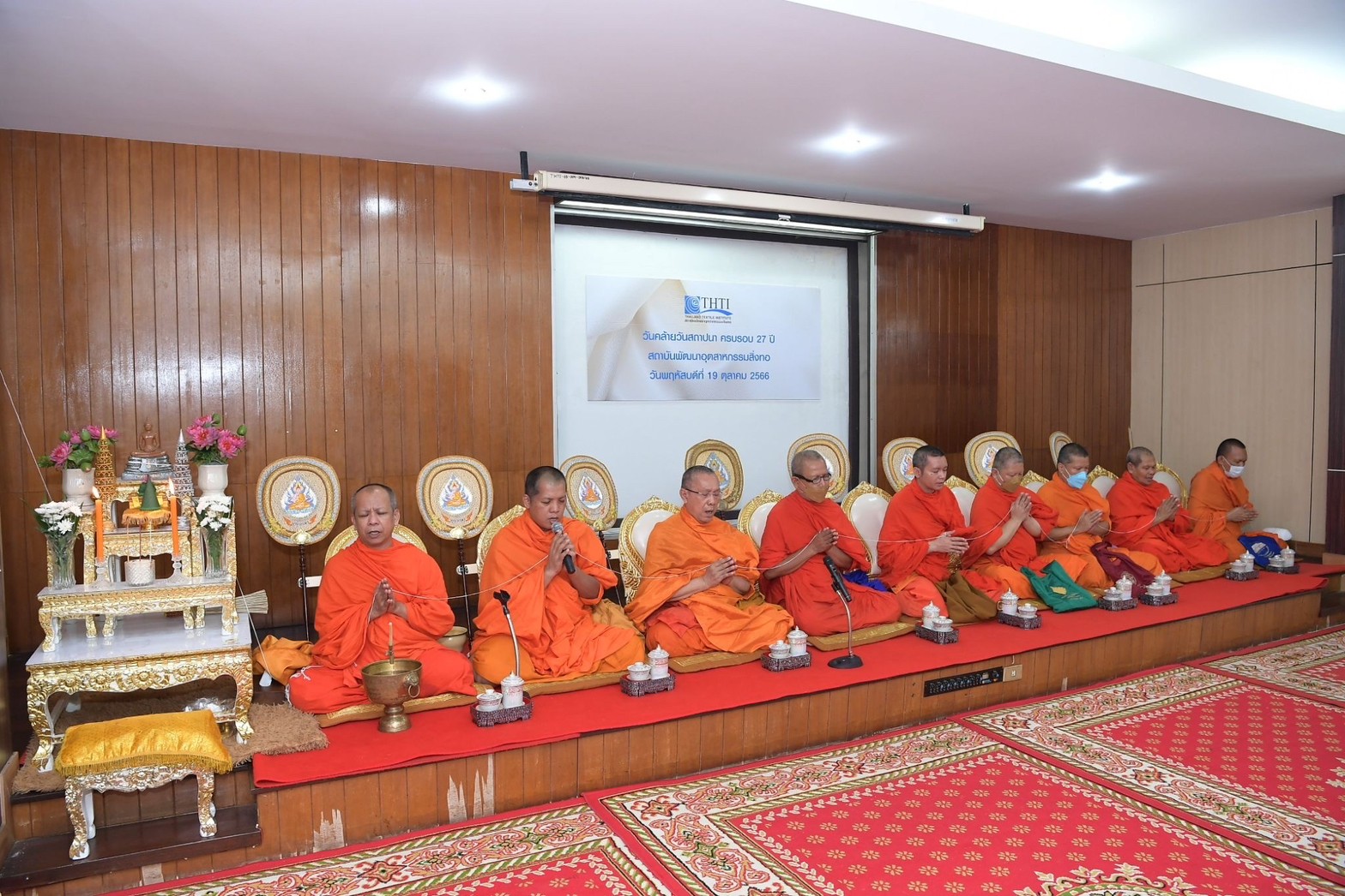 19 ต.ค. 66 นายปราโมทย์ วิทยาสุข ประธานกรรมการสถาบันพัฒนาอุตสาหกรรมสิ่งทอ พร้อมด้วย ดร.ชาญชัย สิริเกษมเลิศ ผู้อำนวยการสถาบันพัฒนาอุตสาหกรรมสิ่งทอ คณะผู้บริหาร พนักงาน สถาบันพัฒนาอุตสาหกรรมสิ่งทอ ร่วมกิจกรรมทำบุญเนื่องในโอกาสวันคล้ายวันสถาปนาครบรอบ 27 ปี (15 ตุลาคม 2539) พร้อมร่วมหารือแนวทางการพัฒนาอุตสาหกรรมสิ่งทอ