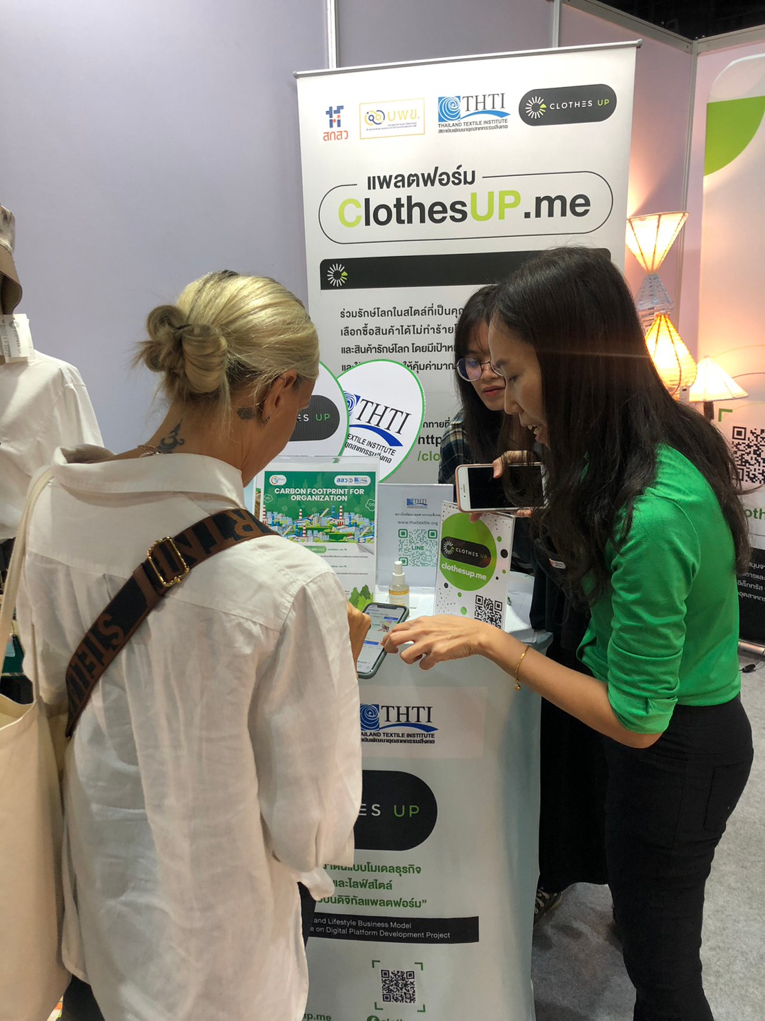 โดยสถาบันพัฒนาอุตสาหกรรมสิ่งทอ ได้นำแพลตฟอร์ม Clothesup.me ไปร่วมประชาสัมพันธ์ ภายในงานนี้ พร้อมจัดกิจกรรมกดไลค์ รับของที่ระลึกสนุกสนาน โดยภายในงานได้รับเกียรติจากผู้บริหารสถาบันฯ ร่วมทั้ง แขกผู้มีเกียรติ ศิลปิน ดารา เข้ามาเยี่ยมชม กันอย่างหลากหลายเลยค่ะ ต้องขอขอบพระคุณทุกท่านที่แวะเวียนเข้ามาร่วมถ่ายภาพด้วยกันนะคะ