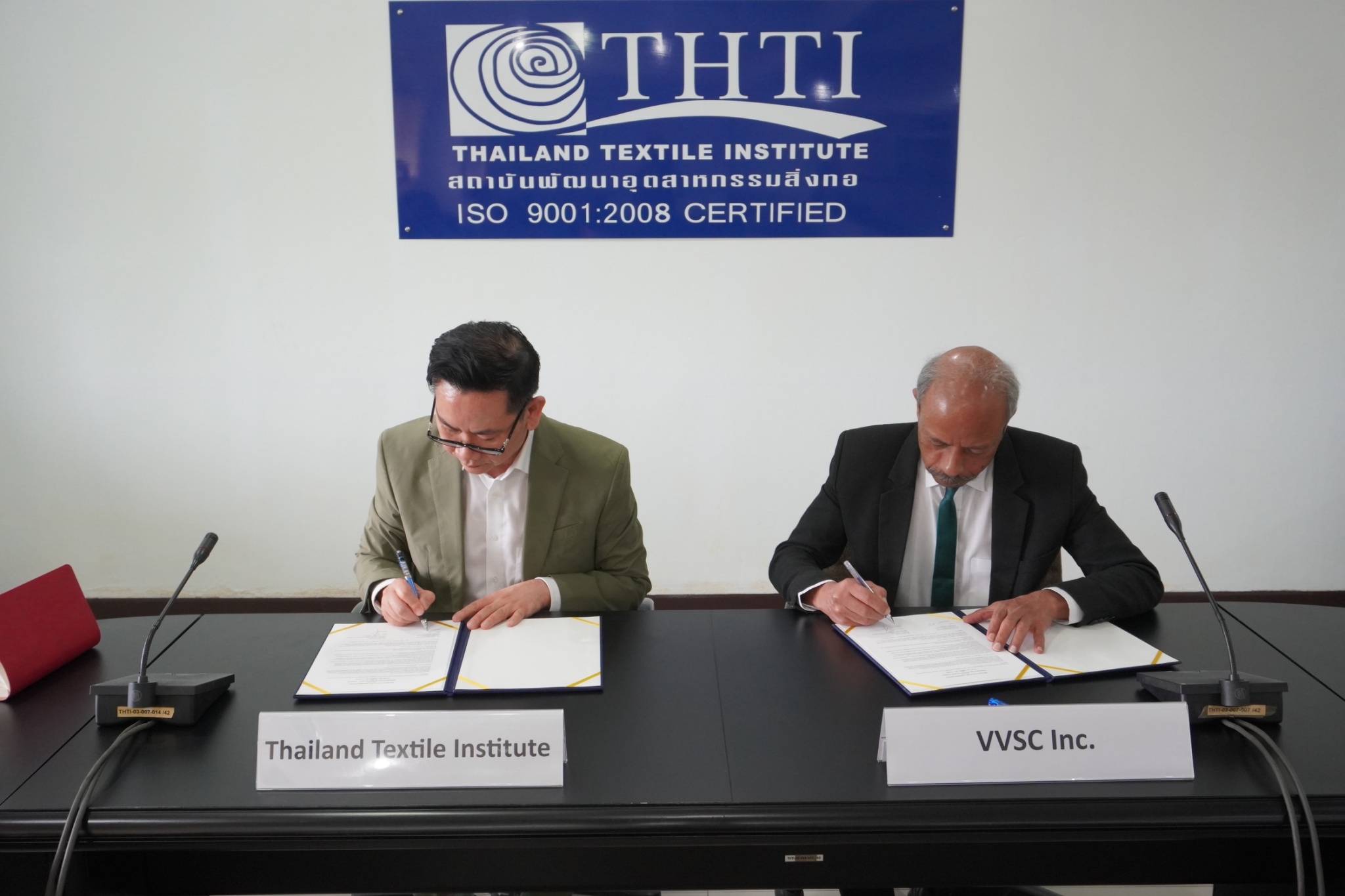 27 ต.ค.66 ดร.ชาญชัย สิริเกษมเลิศ ผู้อำนวยการสถาบันพัฒนาอุตสาหกรรมสิ่งทอ ลงนามบันทึกข้อตกลงความร่วมมือ กับ Mr.Khizer Omer Director, VVSC Inc. ประเทศแคนาดา ณ สถาบันพัฒนาอุตสาหกรรมสิ่งทอ
