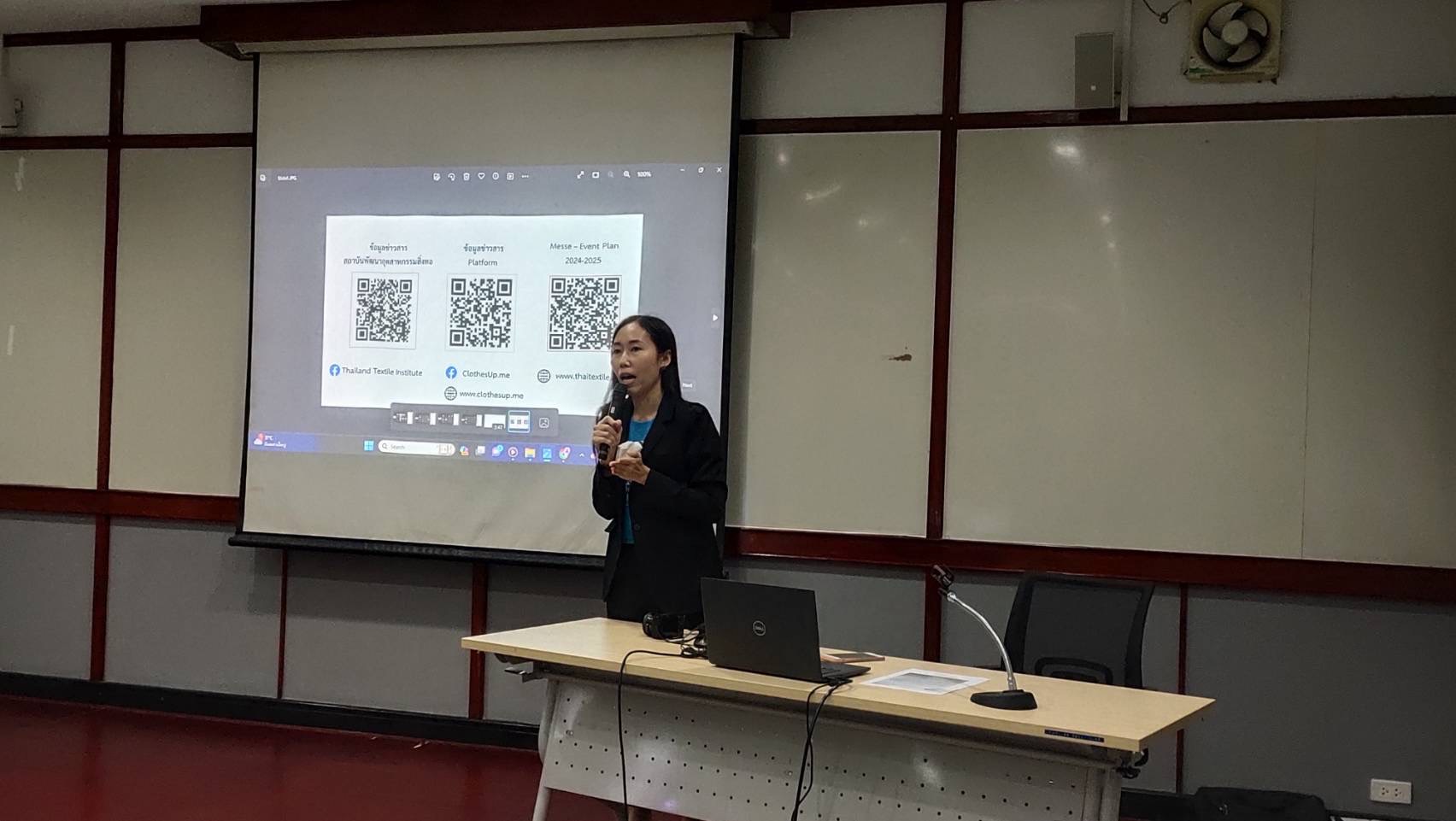 9 พ.ย. 66 นางจุฑามาศ โกเมนไทย ผู้จัดการแผนกข้อมูลอุตสาหกรรม สถาบันพัฒนาอุตสาหกรรมสิ่งทอ ให้การต้อนรับ คณะนักศึกษามหาวิทยาลัยเกริก หลักสูตรพัฒนาธุรกิจการค้าไทย-จีน และสมาคมเครือข่ายที่ปรึกษาวิสาหกิจขนาดกลางและขนาดย่อม ในโอกาสเข้าเยี่ยมชมศึกษาดูงาน ณ สถาบันพัฒนาอุตสาหกรรมสิ่งทอ