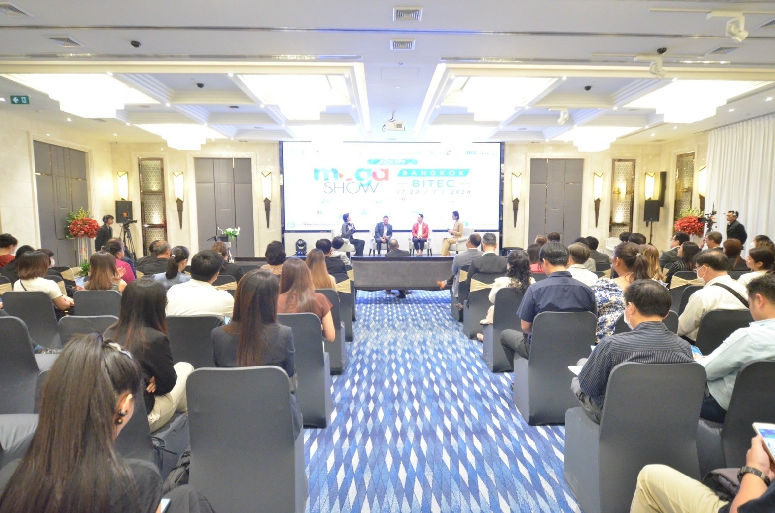 ดร.ชาญชัย สิริเกษมเลิศ ผู้อำนวยการสถาบันพัฒนาอุตสาหกรรมสิ่งทอ ร่วมงานแถลงข่าว Kick Off : Mega Show Bangkok 2024 พร้อมเสวนา Session Mega Show Bangkok : Challenge and Opportunities ณ โรงแรมแกรนด์ เซ็นเตอร์พอยท์ เทอร์มินัล 21