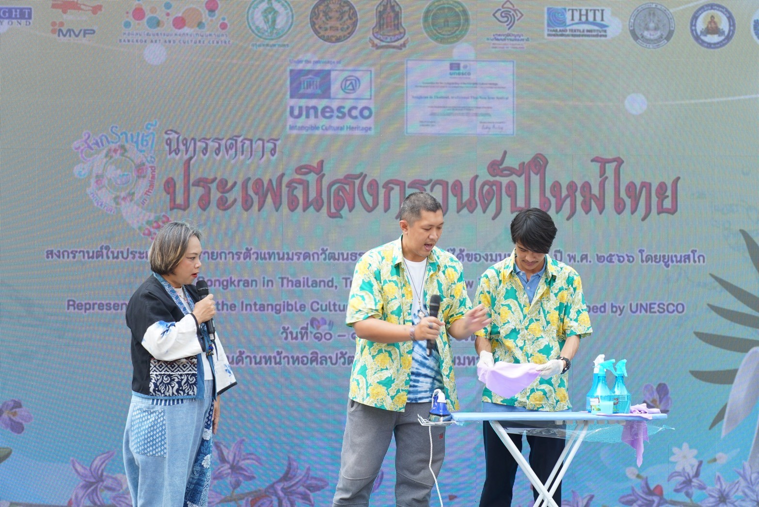 สถาบันพัฒนาอุตสาหกรรมสิ่งทอ หน่วยงานเครือข่ายกระทรวงอุตสาหกรรม นำผลงานจากผู้ชนะในกิจกรรมการประกวดออกแบบลายกราฟฟิก “เสื้อสงกรานต์ที่ไม่ใช่ลายดอก” SONGKRAN SHIRT DESIGN จัดแสดงมินิแฟชั่นโชว์ ภายในงาน "นิทรรศการประเพณีสงกรานต์ปีใหม่ไทย" จัดขึ้นระหว่างวันที่ 10 - 12 เมษายน 2567 ณ ลานด้านหน้าหอศิลปวัฒนธรรมแห่งกรุงเทพมหานคร ประกอบไปด้วย