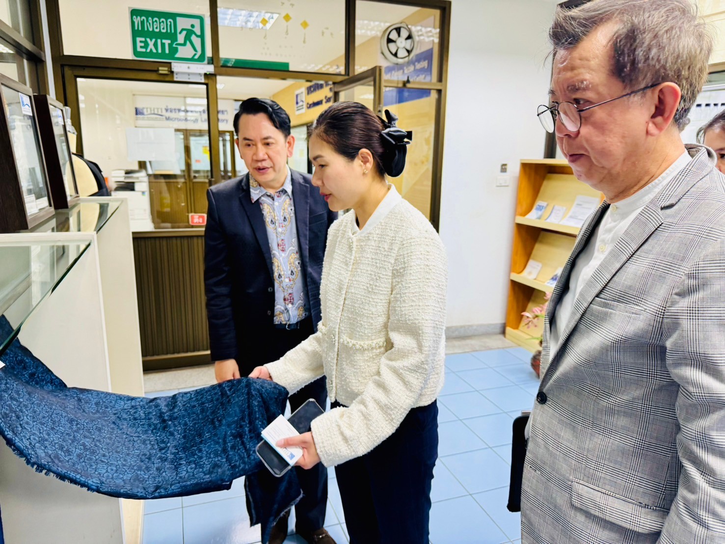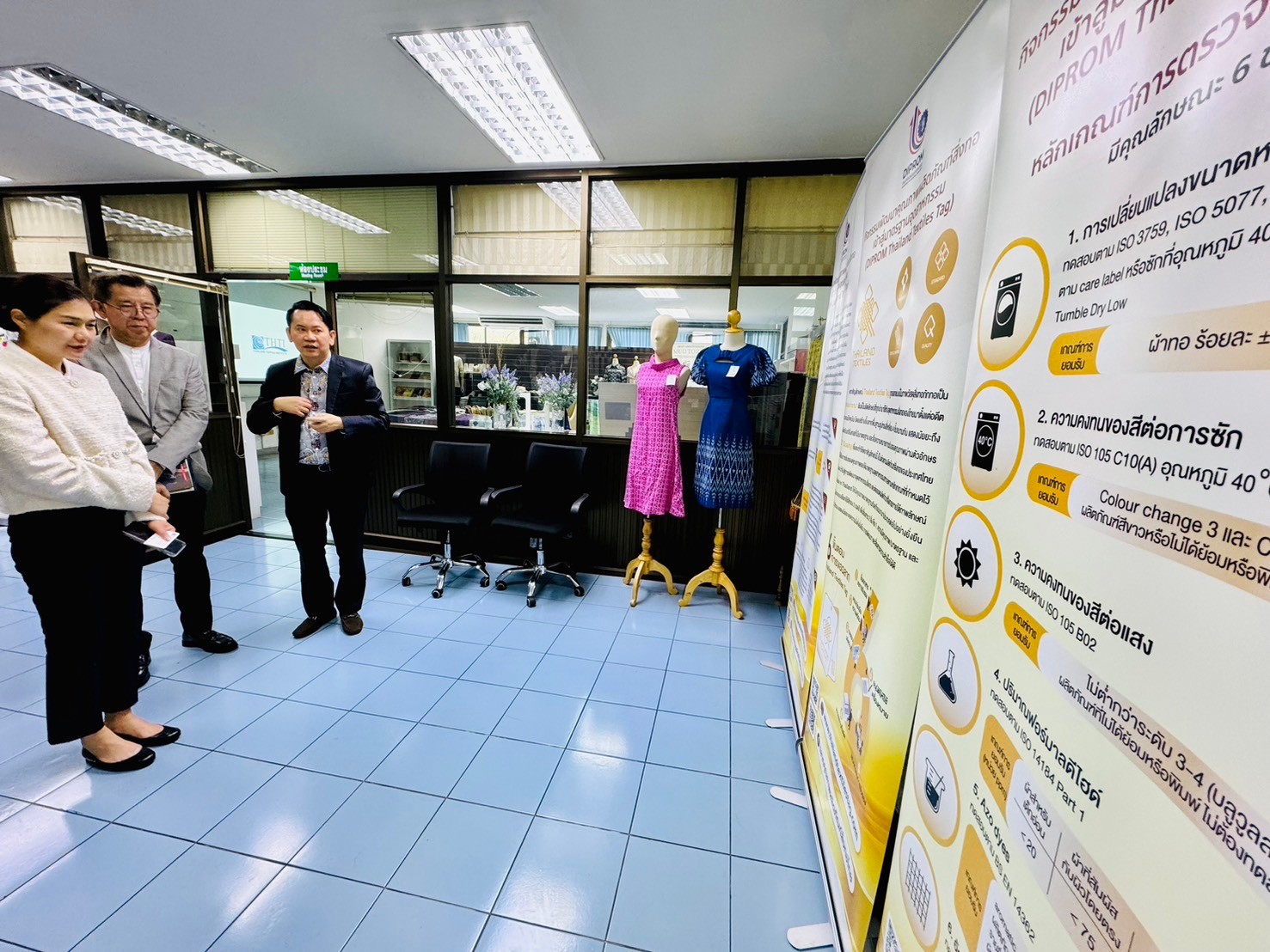 10 พ.ค.67 สถาบันพัฒนาอุตสาหกรรมสิ่งทอ ให้การต้อนรับ คุณจิราพร สินธุไพร รัฐมนตรีประจำสำนักนายกรัฐมนตรี ในโอกาสเข้าเยี่ยมชม การพัฒนาเส้นใยธรรมชาติ การพัฒนาผ้า อาทิ ผ้าไหม ผ้าย้อมคราม ผ้าในอุตสาหกรรมสิ่งทอ ด้วยเทคนิคต่าง ๆ รวมทั้ง เรื่องมาตรฐานการทดสอบของสิ่งทอ ณ สถาบันพัฒนาอุตสาหกรรมสิ่งทอ