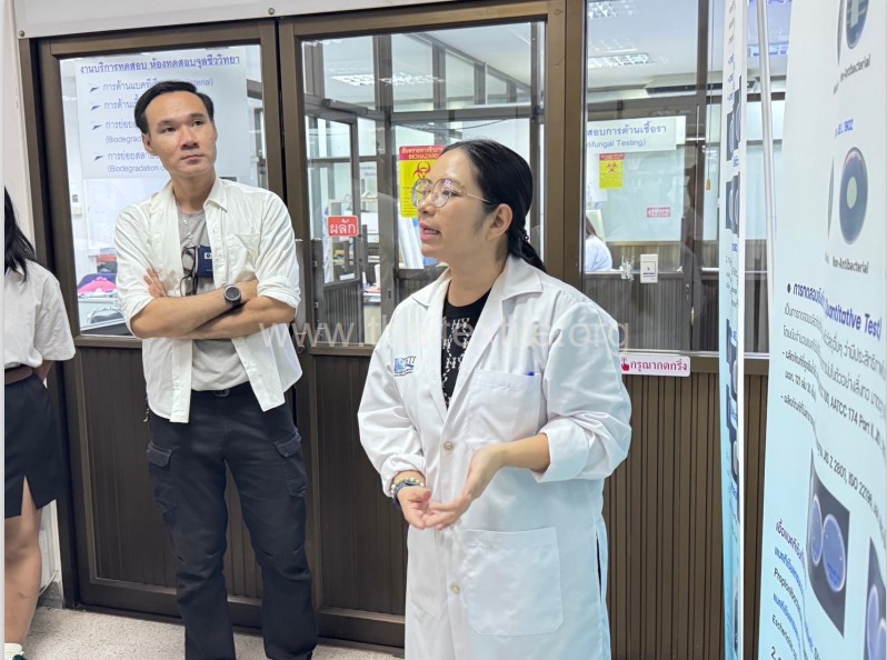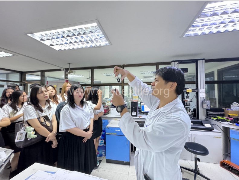 11 ต.ค.67 สถาบันพัฒนาอุตสาหกรรมสิ่งทอ ให้การต้อนรับ คณะอาจารย์ พร้อมด้วย นักศึกษา สาขาวิชาศิลปะการออกแบบพัสตราภรณ์ คณะศิลปกรรมศาสตร์ มหาวิทยาลัยธรรมศาสตร์ ในโอกาสเยี่ยมชมศึกษาดูงาน ณ สถาบันพัฒนาอุตสาหกรรมสิ่งทอ เพื่อเรียนรู้เกี่ยวกับกระบวนการวิเคราะห์ทดสอบผลิตภัณฑ์ เส้นใย เส้นด้าย ผ้าผืน สิ่งทอ วัสดุต่างๆ รวมทั้ง นวัตกรรม เทคโนโลยี ฟังก์ชั่น เพื่อเป็นแนวทางในการสร้างมูลค่าเพิ่มให้กับผลิตภัณฑ์สิ่งทอแฟชั่นไลฟ์สไตล์ในอนาคต