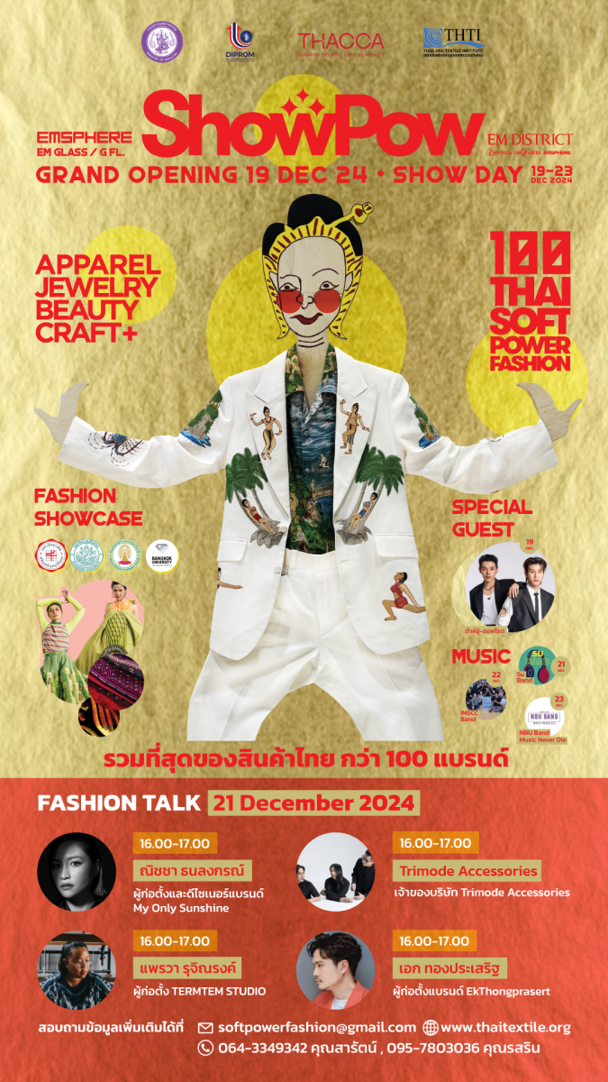กรมส่งเสริมอุตสาหกรรม (DIPROM) หรือ ดีพร้อม กระทรวงอุตสาหกรรม ชวนทุกคนมาร่วมงาน Show Pow ภายใต้โครงการส่งเสริมภาพลักษณ์สินค้าแฟชั่นไทยสู่สากล