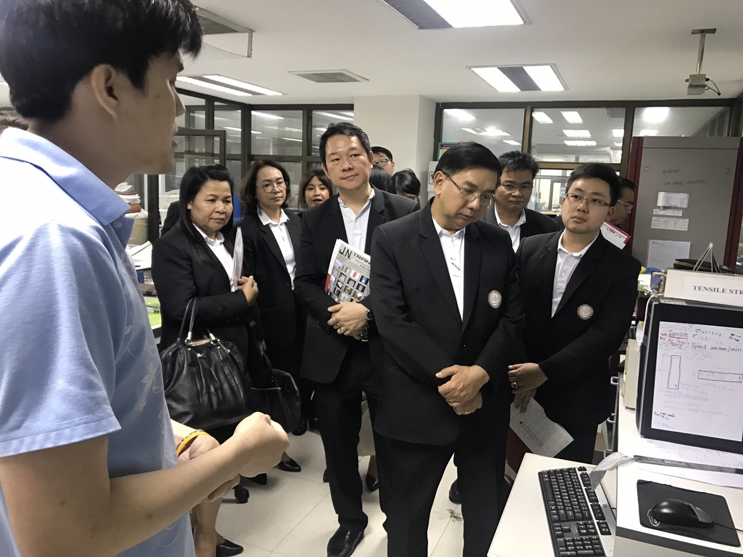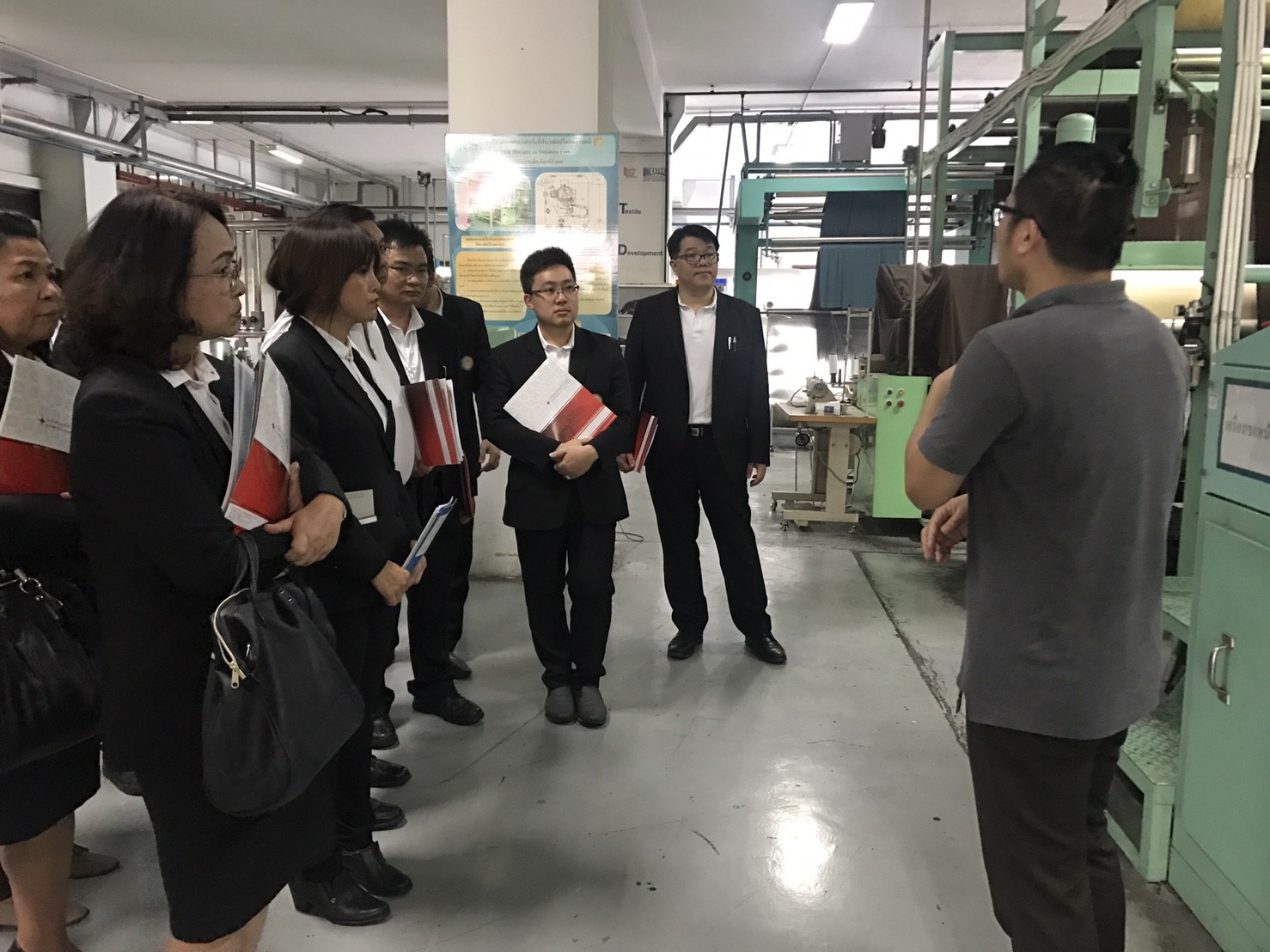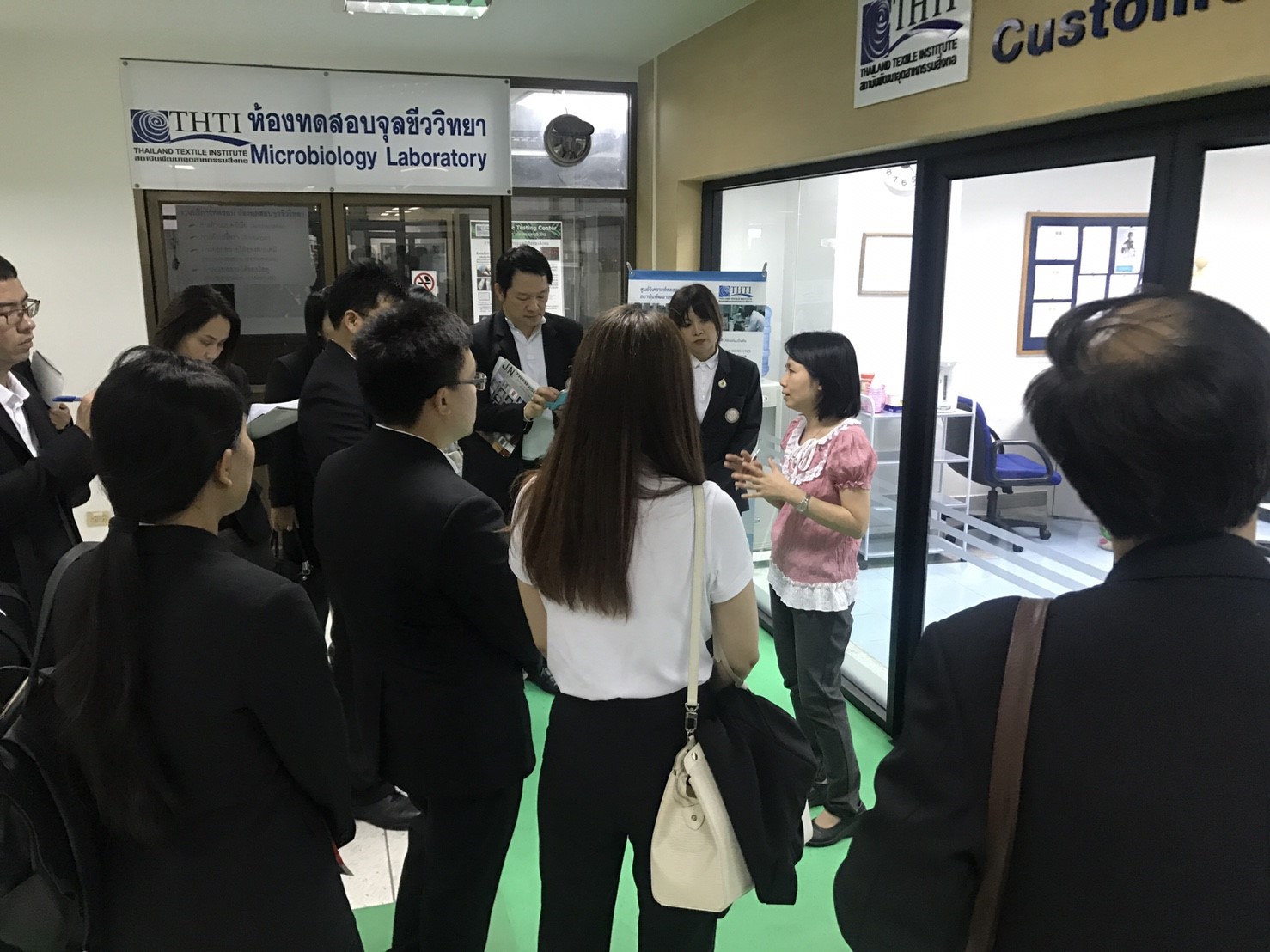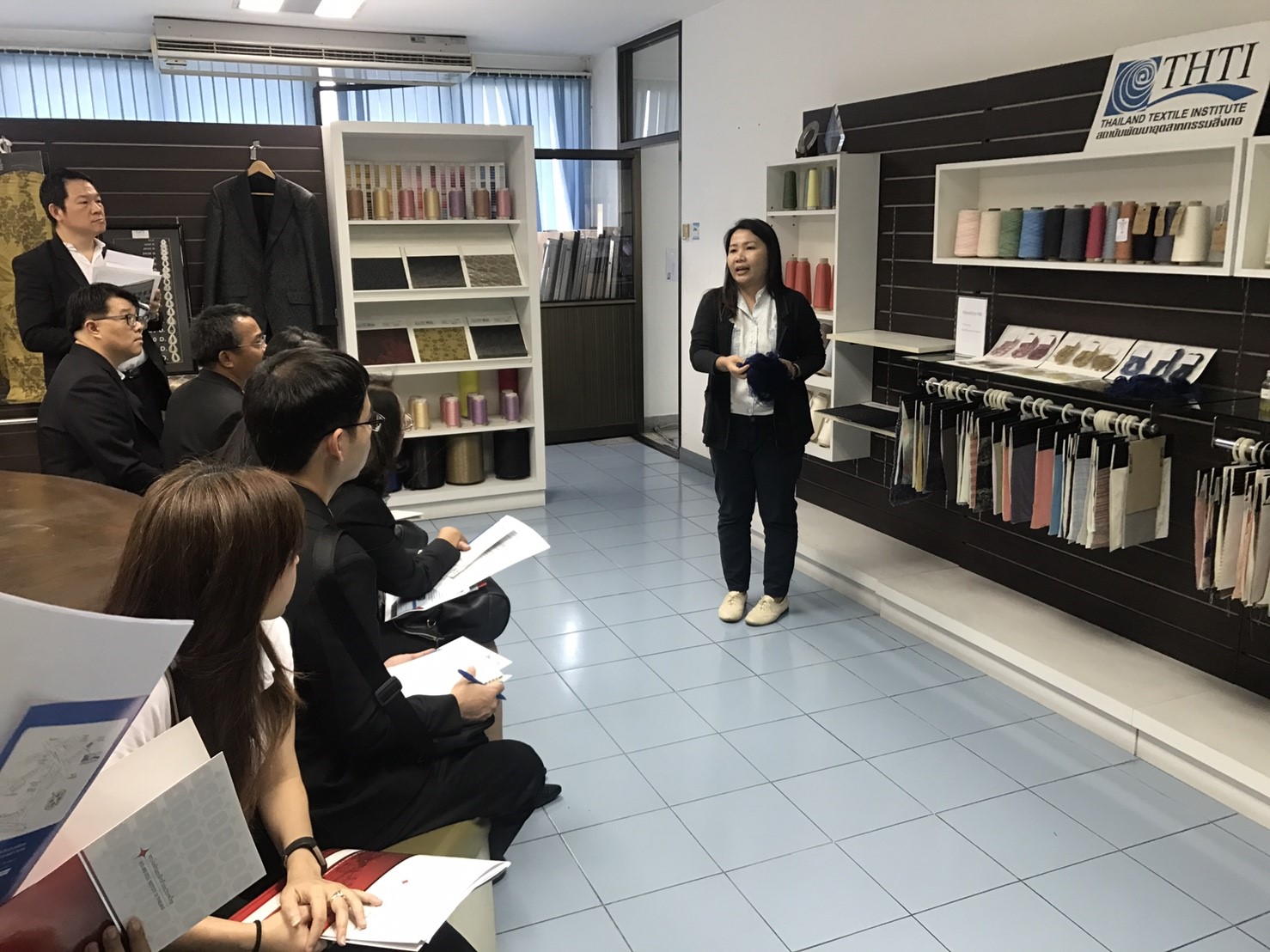 นางสาวพีรพร พละพลีวัลย์ ผู้อำนวยการศูนย์วิเคราะห์ทดสอบสิ่งทอ สถาบันพัฒนาอุตสาหกรรมสิ่งทอ ให้การต้อนรับ คณะนักศึกษาหลักสูตรวิชาชีพที่ปรึกษาธุรกิจ เพื่อการพัฒนาวิสาหกิจไทย มหาวิทยาลัยเกษตรศาสตร์ในโอกาสเข้าศึกษาดูงาน ณ สถาบันพัฒนาอุตสาหกรรมสิ่งทอ