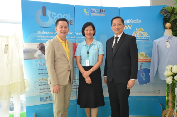 ด้าน ดร.ชาญชัย สิริเกษมเลิศ ผู้อำนวยการ สสท. กล่าวถึง ความร่วมมือว่า สสท. มีนโยบายส่งเสริมให้ผู้บริโภคมีส่วนร่วมในการลดโลกร้อน และลดปริมาณการปล่อยก๊าซเรือนกระจก จึงได้ร่วมกับ อบก.ดำเนินการส่งเสริมและพัฒนาเสื้อผ้าลดโลกร้อน หรือเสื้อคูลโหมด โดย สสท. มีบทบาทในการสนับสนุนให้ผู้ประกอบการพัฒนาคุณภาพของผลิตภัณฑ์ภายใต้โครงการต่าง ๆ ทั้งการให้คำปรึกษา และการดำเนินการทดสอบ รวมถึงเพิ่มโอกาสในการแข่งขันทางด้านการตลาด ด้วยการผลักดันให้เสื้อคูลโหมด ได้รับการบรรจุเข้าสู่รายการสินค้าและบริการที่เป็นมิตรกับสิ่งแวดล้อมของภาครัฐ หรือการจัดซื้อจัดจ้างสีเขียว (Green Procurement) จากนั้น ได้ร่วมกับ กฟผ. พัฒนาเสื้อคูลโหมดไปสู่เสื้อผ้าเบอร์ 5 นอกจากนี้ สสท. ยังได้ดำเนินการส่งเสริมให้ผู้ประกอบการสิ่งทอและผู้บริโภคหันมาให้ความสำคัญกับคุณภาพและความปลอดภัย ผ่านการติดฉลากต่าง ๆ เช่น ฉลากคุณภาพสิ่งทอไทย (Smart Fabric) และฉลากสิ่งทอด้านความปลอดภัยและอาชีวอนามัย โดย สสท. มีผู้เชี่ยวชาญที่พร้อมให้คำแนะนำและร่วมออกบบพัฒนาผลิตภัณฑ์ให้กับผู้ประกอบการที่สนใจ