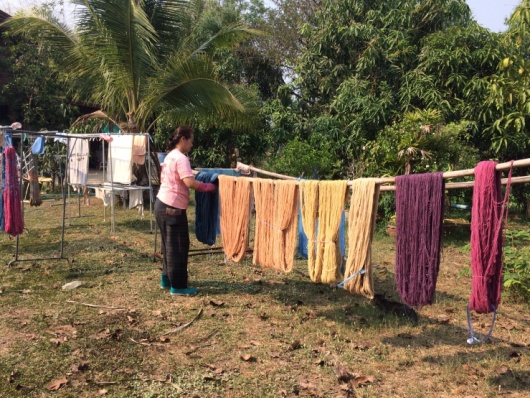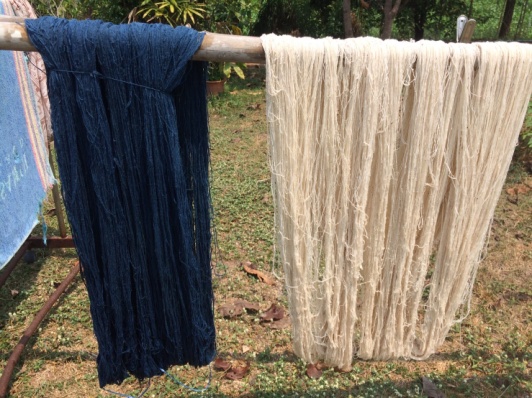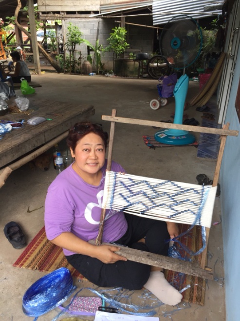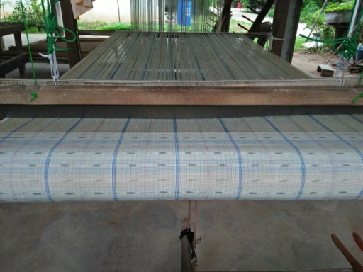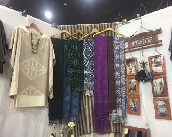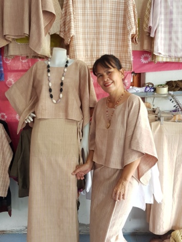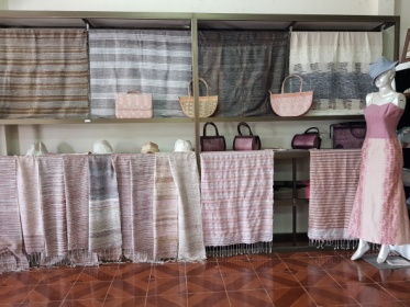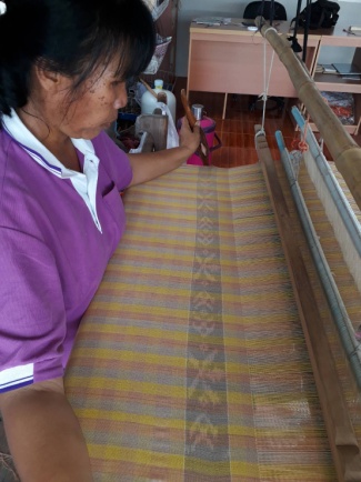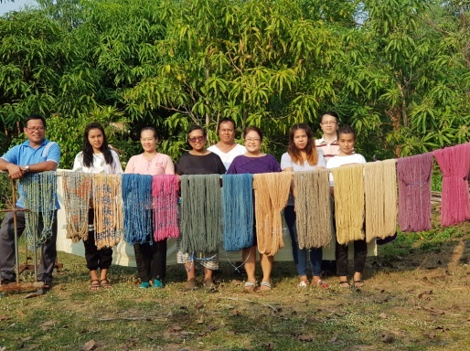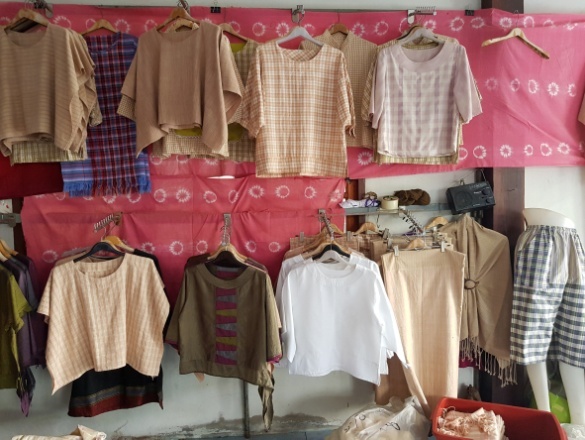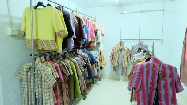 Thor Ya shop has a high potential for product processing, cutting, sewing and dyeing products. The design and color draws from identity of the church's mural. The color is unique to the church as blue, green, cream and yellow. They use cotton yarn mixed with bamboo fiber. The fabric is soft, fluffy and cooling feeling.