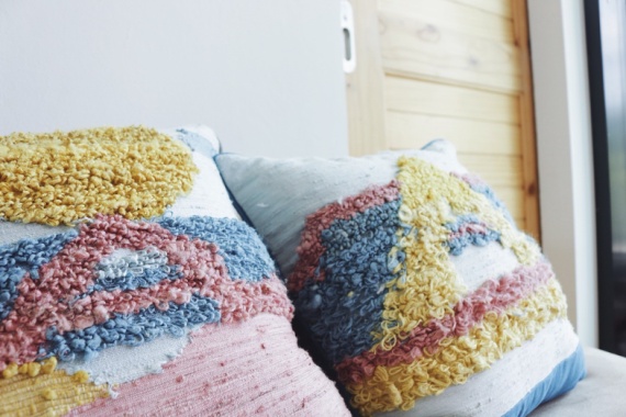The wall art and cushion is capable of weaving and natural dyeing techniques. It has brought about the identity of the local. They applied the paintings of the church along with their unique color such as light blue, yellow, and light pink. They produced in products, such as cushions and wall art 3D surface effect.