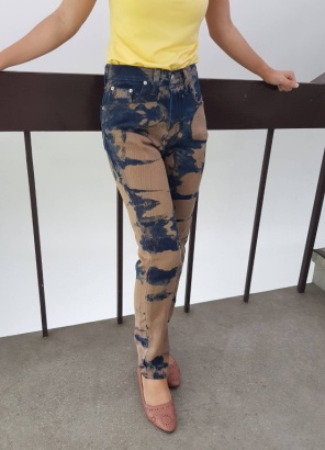 The silk denim with natural dyed. The woven fabrics with yarn stand from indigo dyed line with yarn dyed from silk outer. The new denim fabric make difference from the original jeans. The blue indigo blue and white line stand create a new look with dyed pink lines.