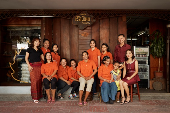 Ruean Mai Bai mon has expertise in silk product development. The finished products preserves traditional local patterns. The concept of new product development is the design of silkworm mud bed with natural dyeing techniques from indigo and lacquer. Decorated with dyeing and finishing process such as added features, functions, antibacterial functions to added value to the product.
