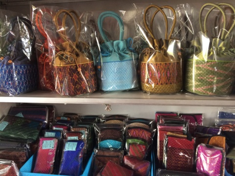 ผลิตภัณฑ์ : กระเป๋าผ้าไหม ย่ามผ้าไหมของพระสงฆ์ กระเป๋าสตางค์ผ้าไหม พวกกุญแจผ้าไหม (Smart textile bag for rechargeable batteries and Smart textile bags with fluorescent lights.)