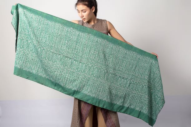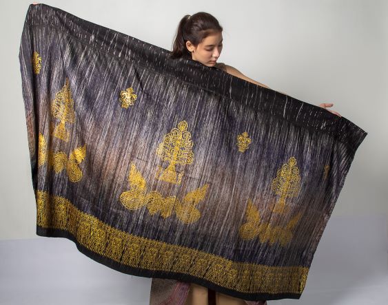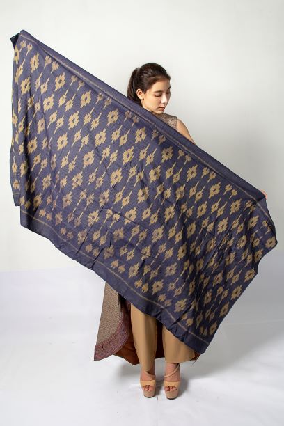New Mudmee Silk has an original design from "Bubbly watermark" caused by the sponge wave from the swamp in the water near the community. The water’s circles spread out from the center. The project development of this project applied the modern art and blend Mudmee. Together with the color of flowers from Khon Kaen to inspire the color of the silk.