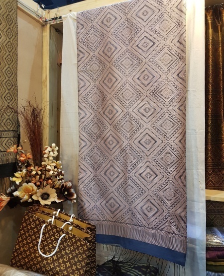 The Sange Bura Pa is inspired the sun. The pattern is symmetrical in both directions. The product is used to decorate the living room. The design shows the texture of the fabric. The new innovation is the use of Filagent fibers combined with cotton fiber, color design and natural Dyeing