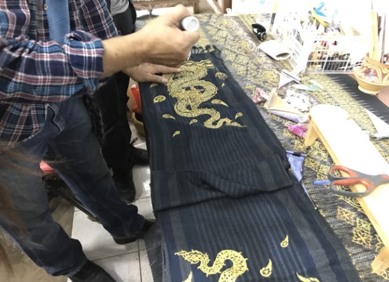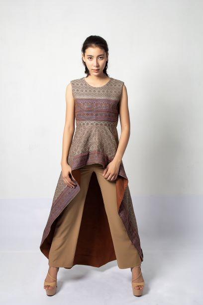 The pattern of woven fabric has taken the identity of the design from the red lotus, which is a tourist attraction in Udon Thani. The weaving patterns are a mixture of ancient and modern patterns. The process of dyeing from red to pink. The difference from the original dyeing process which has only yellow and brown. The design of clothing is Arts to Wears.