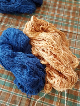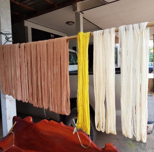 ผลิตภัณฑ์ : ผ้าฝ้าย ผ้าไหม ผ้าคลุมไหล่ ชุดแต่งกาย (KIT silk fabric dyed from red lotus.)
