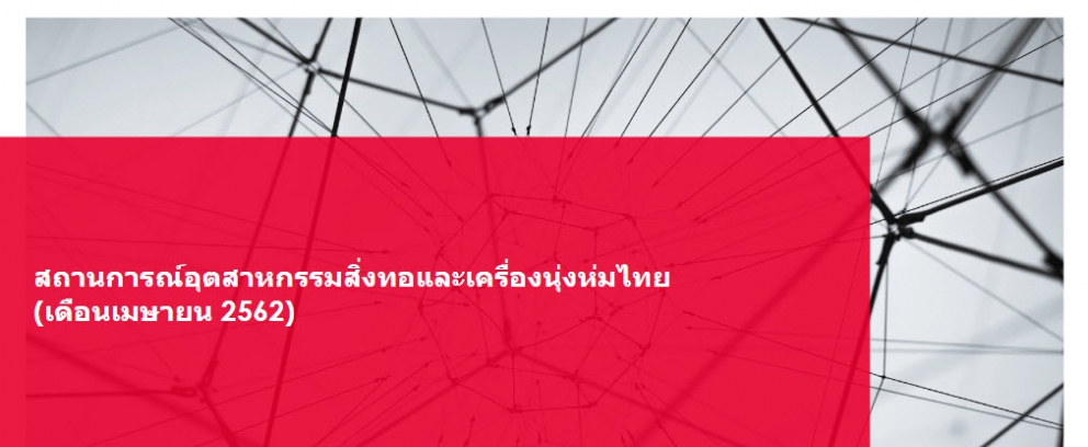 และมูลค่าการส่งออกของไทยแยกตามรายผลิตภัณฑ์ (กลุ่มเครื่องนุ่งห่ม) เดือนเมษายน 2562 พบว่า ปรับตัวลดลงร้อยละ 17.7 (MoM) และ 0.5 (YoY) โดยมีมูลค่าการส่งออกในเดือนดังกล่าวอยู่ที่ 176.6 ล้านเหรียญสหรัฐฯ สำหรับสินค้าที่ยังคงมีการขยายตัวอย่างต่อเนื่อง ได้แก่ เสื้อผ้าสำเร็จรูปที่ผลิตจากเส้นใยประดิษฐ์, ขนสัตว์ และวัสดุอื่น ๆ รวมทั้งเครื่องยกทรง รัดทรง และส่วนประกอบ และถุงมือ โดยขยายตัวเพิ่มขึ้นร้อยละ 1.7, 42.5, 0.1, 2.5 และ 18.3 (YoY)