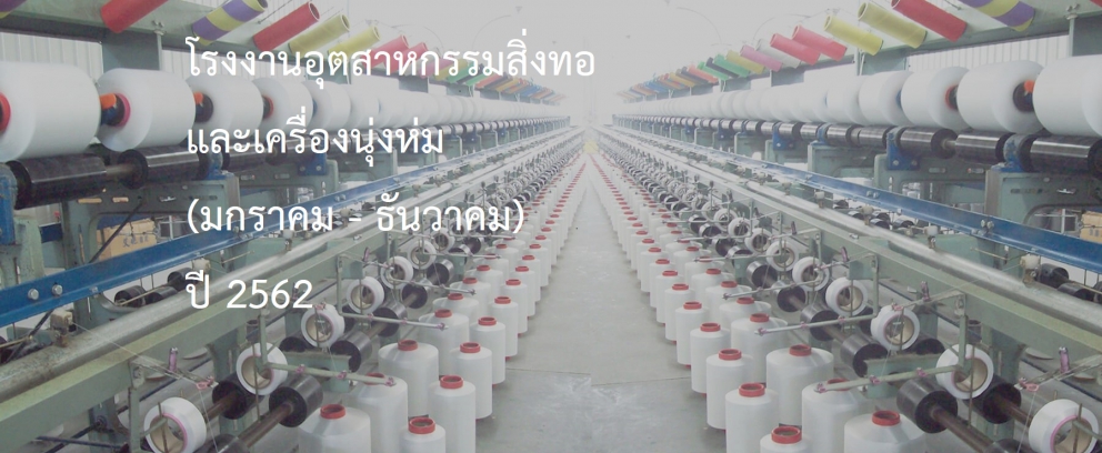 โรงงานอุตสาหกรรมสิ่งทอและเครื่องนุ่งห่ม (สะสม) ณ เดือนมกราคม-ธันวาคม 2562
