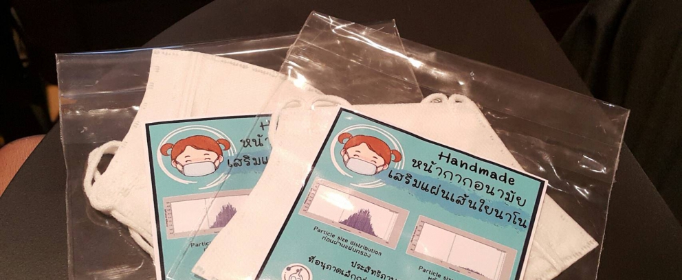 รศ.ดร.นพวรรณ ชนัญพานิช หัวหน้าศูนย์วิจัยบูรณาการนาโน สำนักวิจัยวิทยาศาสตร์และเทคโนโลยี และ ภาควิชาเคมีอุตสาหกรรม คณะวิทยาศาสตร์ประยุกต์ มหาวิทยาลัยเทคโนโลยีพระกล้าพระนครเหนือ (มจพ.)เจ้าของผลงานและนวัตกรรม “หน้ากากอนามัย เสริมแผ่นเส้นใยนาโน” ที่สามารถกรองฝุ่นและไวรัสได้ดี โดย Handmade “หน้ากากอนามัย เสริมแผ่นเส้นใยนาโน” มีคุณสมบัติพิเศษที่แตกต่างจากหน้ากากอนามัยทั่วไป คือ มีประสิทธิภาพการกรองฝุ่นที่อนุภาคเล็กกว่า 0.5 ไมครอน ได้ถึง 96.55% จากการทดสอบก่อนผ่านแผ่นกรอง และหลังผ่านแผ่นกรอง ที่ใช้ได้จริง save ได้ดีเยี่ยม เหมาะกับสถานการณ์เช่นนี้ที่หน้ากากอนามัยขาดแคลนเป็นอย่างมาก นวัตกรรมหน้ากากอนามัย เสริมแผ่นเส้นใยนาโน มีขนาดความกว้าง 14.5 และยาว 15 ซม.