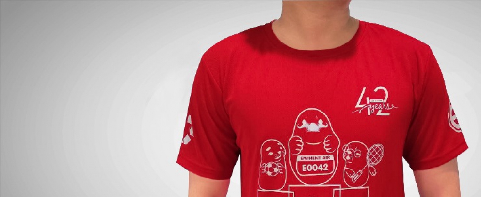 จากปีก่อนที่ บริษัท อีมิแน้นท์แอร์ (ประเทศไทย) จำกัด ได้ดำเนินตามนโยบายของการไฟฟ้าฝ่ายผลิตแห่งประเทศไทย (กฟผ.) ที่ได้กำหนดแผนรณรงค์โครงการเสื้อผ้าประหยัดไฟเบอร์ 5 ให้หน่วยงานต่างๆ ตัดเย็บเสื้อผ้าเบอร์ 5 เพื่อลดการใช้พลังงานในภาพรวม ซึ่งเราได้ทำตามอย่างเคร่งครัด ในปีนี้บริษัท อีมิแน้นท์แอร์ ถือโอกาสฉลองครบรอบ 42 ปีด้วยการจัดกิจกรรมมากมาย แต่ยังคงยืดแนวคิดรักษ์โลก ลดขยะ ด้วยการใช้ “เสื้อยืดอัพไซคลิ่ง”