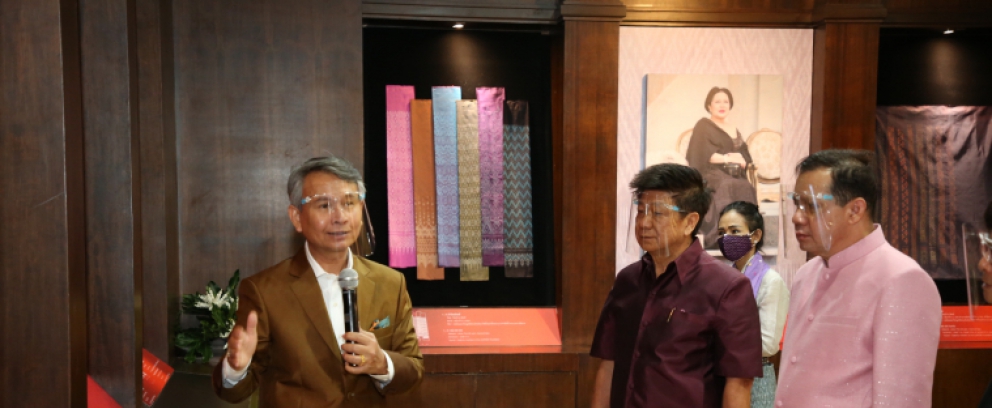 ผศ.ดร.อนุชา ทีรคานนท์ คณบดีคณะศิลปกรรมศาสตร์ มหาวิทยาลัยธรรมศาสตร์ ได้นำชมนิทรรศการ ให้ข้อมูลว่า นับตั้งแต่พระบาทสมเด็จพระบรมชนกาธิเบศร มหาภูมิพลอดุลยเดช มหาราช บรมนาถบพิตร รัชกาลที่ 9 และสมเด็จพระนางเจ้าสิริกิติ์ พระบรมราชินีนาถ พระบรมราชชนนีพันปีหลวง ได้เสด็จพระราชดำเนินไปทรงเยี่ยมราษฎรครั้งแรกในปี 2498 ที่ครั้งหนึ่งได้เสด็จฯ เยี่ยมเยียนราษฎรในท้องที่ชนบทภาคอีสานหลายจังหวัด ทอดพระเนตรเห็นสตรีชาวบ้านนุ่งผ้าซิ่นไหมงดงามมารับเสด็จอยู่แทบทุกพื้นที่ จึงทรงประทับใจในความงามของผ้าไหมมาตั้งแต่ครั้งนั้น และเห็นว่าการทอผ้าเป็นภูมิปัญญาและสิ่งที่ชาวบ้านคุ้นเคย มีการผลิตอยู่ประจำ จนนำไปสู่การช่วยเหลือชาวบ้านในระยะยาว และการก่อตั้งมูลนิธิส่งเสริมศิลปาชีพในสมเด็จพระนางเจ้าสิริกิติ์พระบรมราชินีนาถ ในเวลาต่อมา
