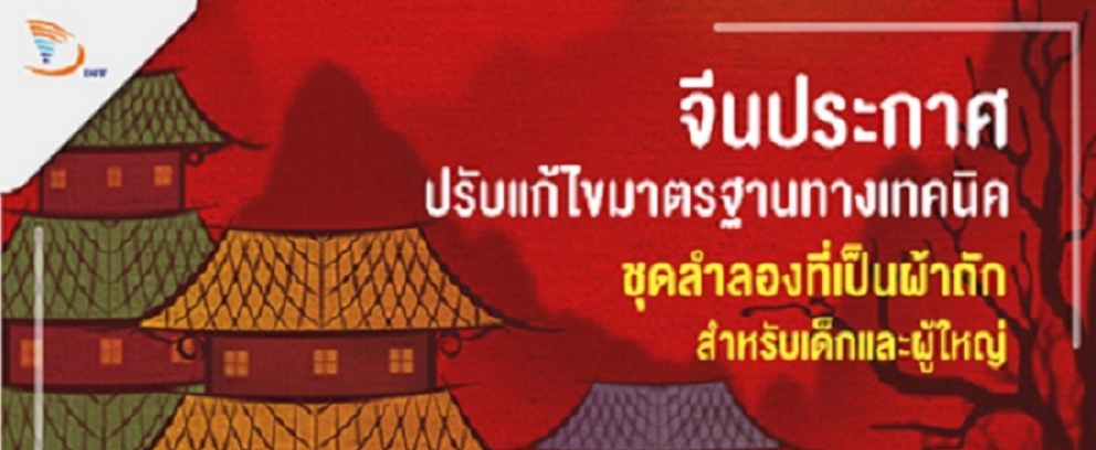 ที่มา : กรมการค้าระหว่างประเทศ: “จีนปรับมาตรฐานชุดลำลองผ้าถัก บังคับใช้1ก.ค.นี้ พาณิชย์เตือนผู้ส่งออกเร่งปรับการผลิต”, June 11, 2020