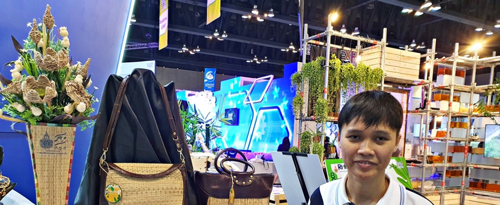 เมื่อพูดถึง “กล้วย” หลายๆ คนคงจะรู้กันดีว่า เป็นพืชที่สามารถนำมาใช้ประโยชน์ได้เกือบทั้งต้น เช่น “ผลกล้วย” ทั้งดิบหรือสุกมีประโยชน์ทางโภชนาการ “ใบตอง” นำมาใช้เป็นภาชนะใส่อาหารหรือประดับตกแต่ง “ลำต้นกล้วย” นำมาทำเป็นปุ๋ย หรือใช้ทำเป็นกระทงลอยในเทศกาลวันลอยกระทง แต่ในบางครั้ง ก็ไม่ได้มีการนำทุกๆ ส่วนของกล้วยมาใช้ประโยชน์ ทำให้ส่วนที่ไม่ได้นำมาใช้ถูกทิ้งเป็นขยะไร้ประโยชน์ ด้วยเหตุนี้จึงได้เกิดเป็นแรงบันดาลใจให้ อาจารย์โสภิดา วิศาลศักดิ์กุล อาจารย์ประจำสาขาศิลปะประดิษฐ์ในงานคหกรรมศาสตร์ คณะเทคโนโลยีคหกรรมศาสตร์ มหาวิทยาลัยเทคโนโลยีราชมงคลธัญบุรี ได้ทำการวิจัยเพื่อนำส่วนที่ไม่ได้ใช้ของกล้วย มาผลิตเป็น “เส้นใยกล้วย” เพื่อต่อยอดให้กลายเป็นผลิตภัณฑ์ที่มีราคา