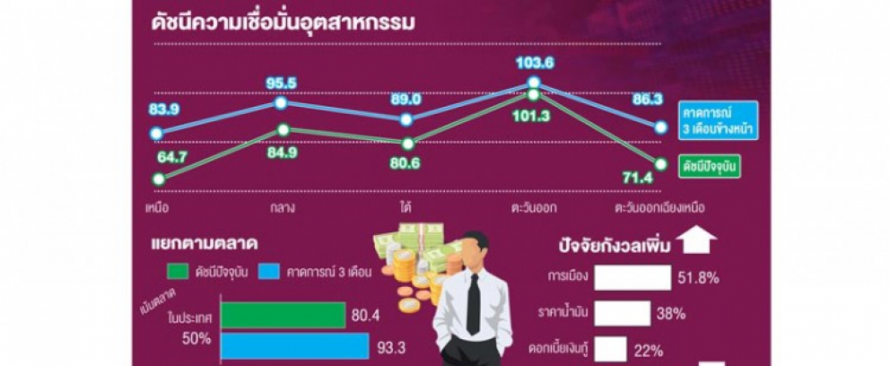 ดัชนีความเชื่อมั่นภาคอุตสาหกรรมการฟื้นตัวของภาคการผลิตมีทิศทางที่ดีขึ้น โดยความเชื่อมั่นเมื่อแยกรายภูมิภาคจะพบว่าภาคตะวันออกซึ่งเป็นที่ตั้งของอีอีซีมีค่าดัชนีสูงที่สุดของประเทศ