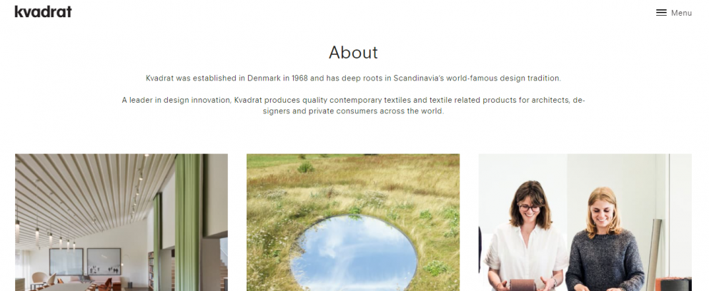kvadrat สำนักงานใหญ่ตั้งอยู่ในประเทศเดนมาร์ก ก่อตั้งเมื่อปี 1968 (พ.ศ.2511) มีความเชี่ยวชาญและมีชื่อเสียงในการออกแบบสร้างสรรค์ดีไซน์แบบสแกนดิเนเวียดั้งเดิมและศิลปะวัฒนาร่วมสมัยที่โด่งดังไปทั่วโลก เป็นผู้นำด้านนวัตกรรมการออกแบบ และการผลิตสิ่งทอฟังก์ชั่นสำหรับบ้านซึ่งมีคุณภาพสูงและมีสไตล์ ผลิตภัณฑ์ของ Kvadrat ได้สะท้อนให้เห็นถึงความทุ่มเทในเรื่องสี คุณภาพ ความเรียบง่าย และนวัตกรรม
