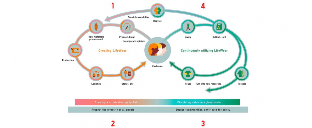 โคจิ ยาไน ประธานเจ้าหน้าที่บริหารอาวุโสของ Fast Retailing กล่าวว่า “การจัดหาเสื้อผ้าที่ลูกค้าสามารถใช้ได้เป็นเวลานานเป็นเป้าหมายของธุรกิจของเรามาหลายปีแล้ว เนื่องจากปัญหาสิ่งแวดล้อมและปัญหาร้ายแรงอื่น ๆ ทั่วโลกเริ่มปรากฏชัดขึ้น เราจึงได้พัฒนาปรัชญาของเราต่อไป และกำลังดำเนินมาตรการเพื่อแสดงให้โลกเห็นถึงอนาคตของเสื้อผ้า ในขณะเดียวกันก็ช่วยให้เกิดสังคมที่ยั่งยืน ด้วยการก้าวไปข้างหน้าผ่านการสนับสนุนและความร่วมมือในวงกว้างจากลูกค้าและบริษัทพันธมิตร Fast Retailing จะสร้าง “อุตสาหกรรมใหม่” ด้วยการทำให้ LifeWear พร้อมให้บริการแก่ลูกค้ามากขึ้น เรามุ่งมั่นที่จะดำเนินธุรกิจในลักษณะที่ปรับปรุงชีวิตของผู้คนและสังคมทั่วโลกได้”