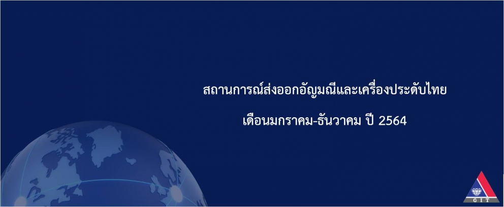 สถานการณ์ส่งออกอัญมณีและเครื่องประดับไทยเดือนมกราคม-ธันวาคม ปี 2564
