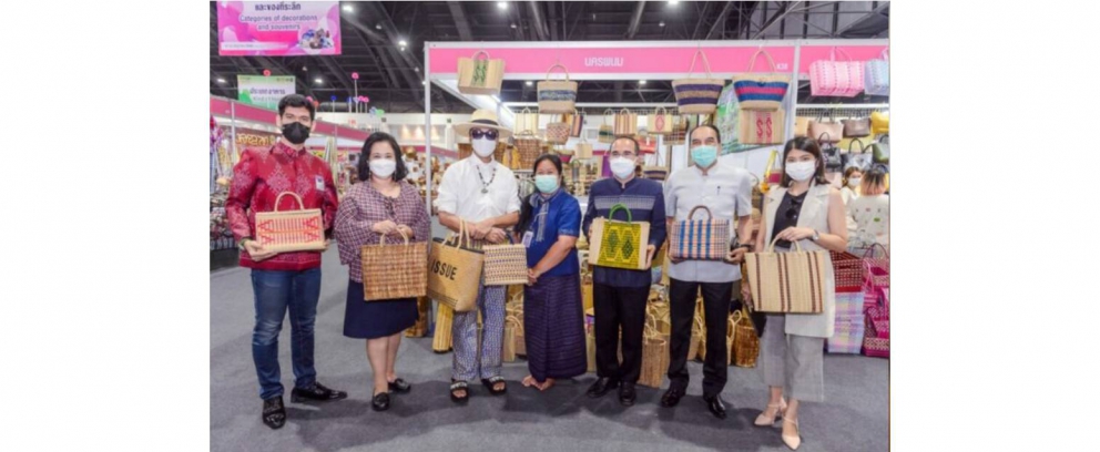 ที่อาคารชาเลนเจอร์ 1-3 ศูนย์แสดงสินค้าและการประชุม อิมแพ็ค เมืองทองธานี นายภูภวิศ กฤตพลนารา ผู้ก่อตั้งแบรนด์ ISSUE และคณะผู้เชี่ยวชาญด้านการออกแบบสิ่งทอและแฟชั่น เยี่ยมชมผลิตภัณฑ์โอทอปไทยในงาน OTOP Midyear 2022 “สุขช้อป สุขใจ สุขทั่วไทยรวมไว้ในที่เดียว” เพื่อให้คำแนะนำแก่ผู้ผลิต ผู้ประกอบการกลุ่มวิสาหกิจชุมชนสหกรณ์จักสาน ต.เหล่าพัฒนา จ.นครพนม เกี่ยวกับการผลิตและออกแบบผลิตภัณฑ์โอทอปไทย เพื่อให้มีความทันสมัยและเป็นสากลมากขึ้น ภายใต้พระกรุณาธิคุณของสมเด็จพระเจ้าลูกเธอ เจ้าฟ้าสิริวัณณวรี นารีรัตนราชกัญญา ที่ทรงพระราชทานโอกาสให้นักออกแบบไทยได้เข้ามามีส่วนร่วมในการพัฒนาคุณภาพและฝีมือของประชาชนที่เป็นผู้ผลิตงานหัตถกรรมหัตศิลป์ไทย โดยมีนายสมคิด จันทมฤก อธิบดีกรมการพัฒนาชุมชน (พช.) ผศ.ดร.ศศิธร จันทมฤก ประธานชมรมแม่บ้านพัฒนาชุมชน นายวรงค์ แสงเมือง ผู้อำนวยการสำนักส่งเสริมภูมิปัญญาท้องถิ่นและวิสาหกิจชุมชน และคณะทำงาน ให้การต้อนรับ