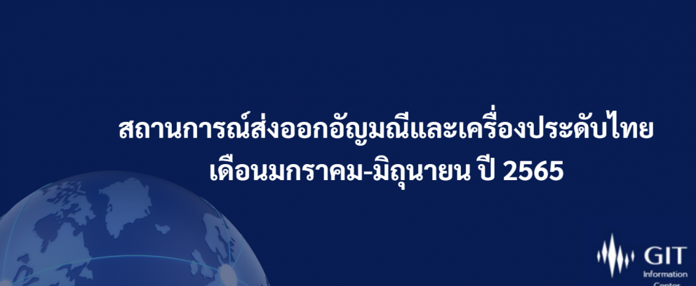 สถานการณ์ส่งออกอัญมณีและเครื่องประดับไทยเดือนมกราคม-มิถุนายน ปี 2565