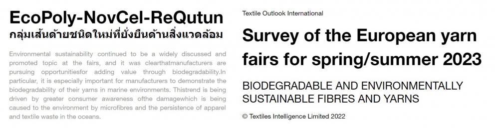 ที่มา(ข้อมูล): Survey of the European yarn fairs for spring/summer 2023, Textile Outlook International, No 213