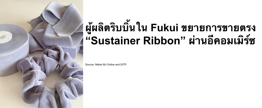 Takashima Ribbon ผู้ผลิตริบบิ้นรายใหญ่ในจังหวัด Fukui ได้เริ่มต้นธุรกิจอีคอมเมิร์ซ (EC) ของตนเอง และพัฒนาริบบิ้นงานฝีมือรวมถึงผลิตภัณฑ์อื่น ๆ จากเส้นด้ายรีไซเคิลที่ได้จากเสื้อผ้าที่ถูกทิ้งเป็นวัตถุดิบ โดยตั้งเป้าที่จะเพิ่มอัตราส่วนการจำหน่ายเป็น 30% ผ่านการเผยแพร่ข้อมูลบน SNS (โซเชี่ยล) และส่งเสริม “Sustainer Ribbon” ที่เป็นมิตรกับสิ่งแวดล้อม