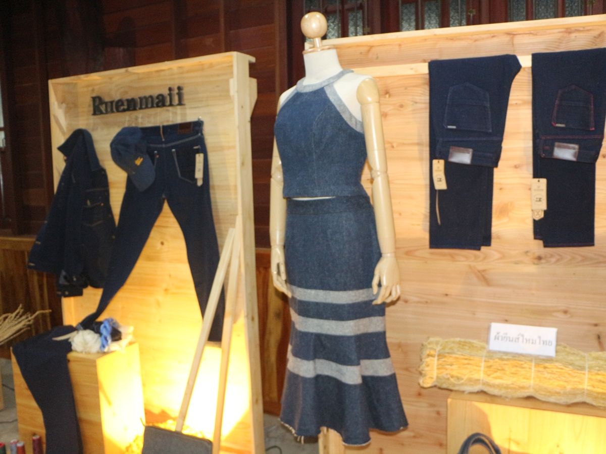 ผ้าไหมยีนส์ นวัตกรรมต่อยอดเส้นไหมสู่การนำมาทอเป็นผ้าไหมยีนส์ ก่อนตัดเป็นกางเกงยีนส์และชุดแฟชั่นที่ทันสมัยหลากหลายแบบ ของดีจากเมืองสุรินทร์ ภายใต้แบรนด์ 'เรือนไหม ใบหม่อน'