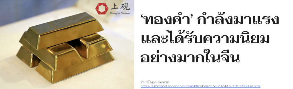 ร้านจำหน่ายทองคำและเครื่องประดับในนครเซี่ยงไฮ้เผยว่า ตลาดทองคำกลับมาคึกคักอีกครั้งในช่วงเทศกาลตรุษจีนที่ผ่านมา โดยสามารถจำหน่ายได้มากกว่า 1,000 แท่งต่อวัน และมีลูกค้าบางรายซื้อเครื่องประดับทอง มูลค่ากว่า 200,000 หยวน ในครั้งเดียว ทั้งนี้ นับตั้งแต่ต้นปี พบว่า ราคาทองคำโลกมีแนวโน้มปรับตัวสูงขึ้น ส่งผลให้ผู้บริโภคมีความสนใจในทองคำมากขึ้น และเป็นที่น่าสังเกตว่า ผู้ซื้อทองคำไม่ได้จำกัดอยู่แค่ผู้สูงอายุอีกต่อไป แต่กลับพบว่า วัยรุ่นไปจนถึงวัยกลางคนจำนวนมากเริ่มกลายเป็นกลุ่มผู้บริโภคหลัก และการบริโภคทองคำ ไม่ได้กระจุกตัวเฉพาะในเมืองใหญ่อีกต่อไป แต่ได้ขยายไปเมืองรองต่าง ๆ มากขึ้น ส่งผลให้ความต้องการทองรูปพรรณและการลงทุนทองคำเพิ่มขึ้นอย่างมากในหลายพื้นที่ทั่วประเทศในจีน