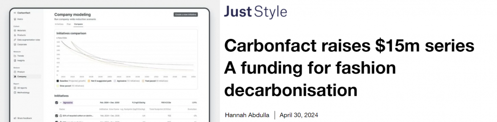 Carbonfact แพลทฟอร์มซอฟต์แวร์การจัดการคาร์บอนในสาขาเสื้อผ้าและรองเท้า ระดมเงินทุนประเภท A (การระดมเงินทุนสำหรับบริษัทสตาร์ทอัพ) จำนวน 15 ล้านเหรียญฯ เพื่อช่วยบริษัทแฟชั่นต่าง ๆ ให้นำระบบออโตเมชั่นมาใช้ในการรายงานด้านสิ่งแวดล้อมของตน