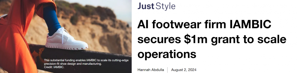บริษัท IAMBIC ซึ่งเป็นสตาร์ทอัพด้านเทคโนโลยีรองเท้า ได้รับเงินทุนสนับสนุนจำนวน 1 ล้านดอลลาร์จากโครงการ Small Business Innovation Research (SBIR) ของมูลนิธิวิทยาศาสตร์แห่งชาติสหรัฐ (NSF) เพื่อนำเทคโนโลยีรองเท้าที่ปรับขนาดได้ด้วย AI ไปสู่การผลิตเชิงพาณิชย์