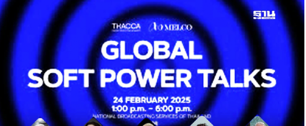 ร่วมมือกันจัดงาน "THACCA Global Soft Power Talks" เวทีซอฟต์พาวเวอร์ระดับโลก ภายใต้หัวข้อ “The New Rules of Soft Power” ในวันที่ 24 กุมภาพันธ์ 2568 ณ อาคาร NBT ถนนวิภาวดีรังสิต กรุงเทพฯ