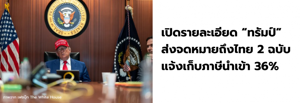 เปิดรายละเอียด “ทรัมป์” ส่งจดหมายถึงไทย 2 ฉบับ แจ้งเก็บภาษีนำเข้า 36% มีผล 1 ส.ค. แยกต่างหากจากภาษีรายอุตสาหกรรม และสินค้าที่มีการส่งผ่านประเทศอื่น ย้ำยังต่ำกว่าระดับที่จำเป็นในการลดการขาดดุลการค้าสหรัฐอย่างมาก