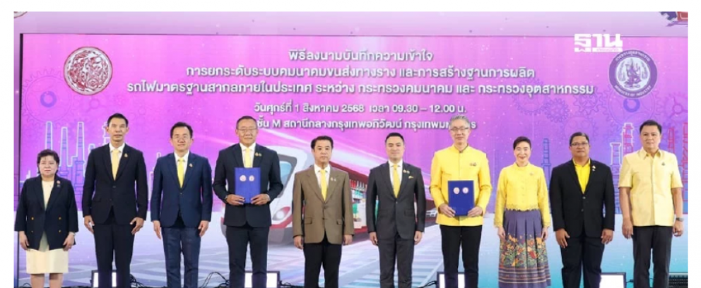 นอกจากนี้ ยังได้ดำเนินการยกระดับระบบคมนาคมขนส่งทางรางและการสร้างฐานการผลิตรถไฟมาตรฐานสากลภายในประเทศ ระหว่าง กระทรวงอุตสาหกรรม โดยกรมส่งเสริมอุตสาหกรรม หรือดีพร้อม (DIPROM) กับ กระทรวงคมนาคม โดย สถาบันวิจัยและพัฒนาเทคโนโลยีระบบราง (องค์การมหาชน) (สทร.) เพื่อการขับเคลื่อนและยกระดับอุตสาหกรรมราง และเพิ่มขีดความสามารถของประเทศไทยในการออกแบบและผลิตรถไฟเองภายในประเทศด้วยเทคโนโลยีที่ทันสมัยและได้มาตรฐานสากล