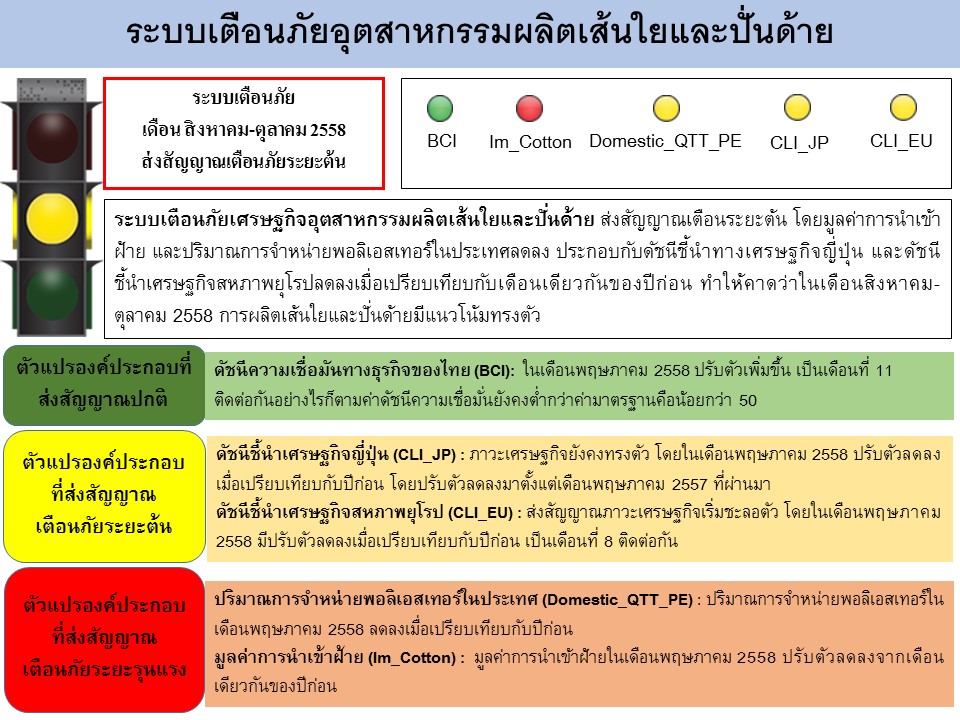 ระบบเตือนภัยอุตสาหกรรมผลิตเส้นใยและปั่นด้าย เดือนสิงหาคม-ตุลาคม 2558