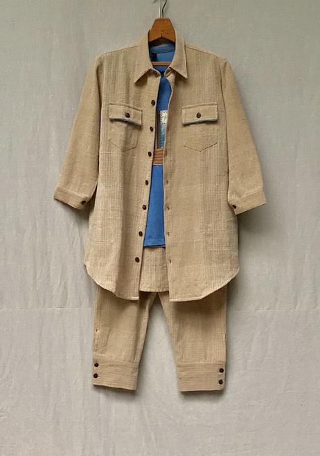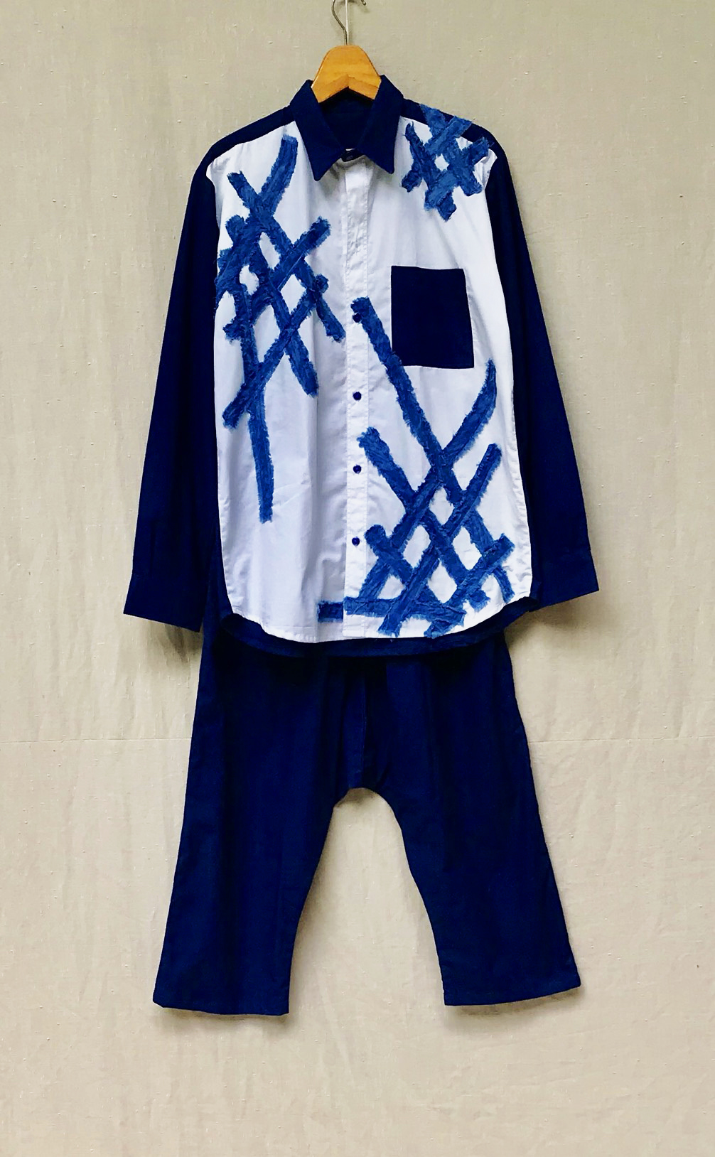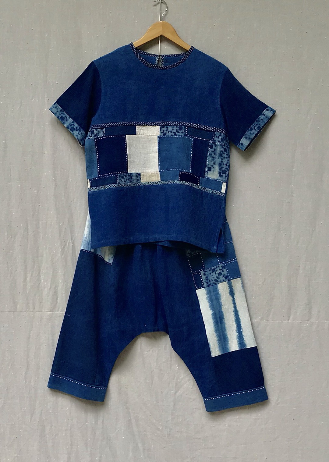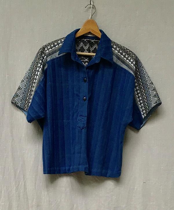 ชื่อผลิตภัณฑ์ Product : ชุดเสื้อเชิ้ตกางเกงม้งผ้าหม้อห้อม (Shirt indigo dye)