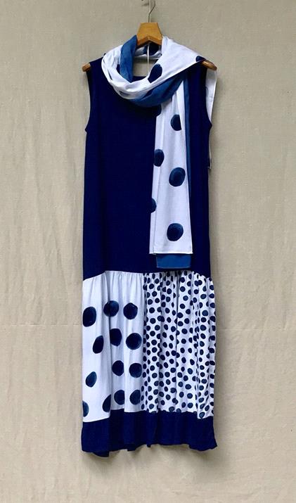 ชื่อผลิตภัณฑ์ Product : ชุดลำลองเพ้นท์ลายและกระเป๋าสะพายย้อมครามธรรมชาติ (Cotton Casual Dress & Shopping bag)