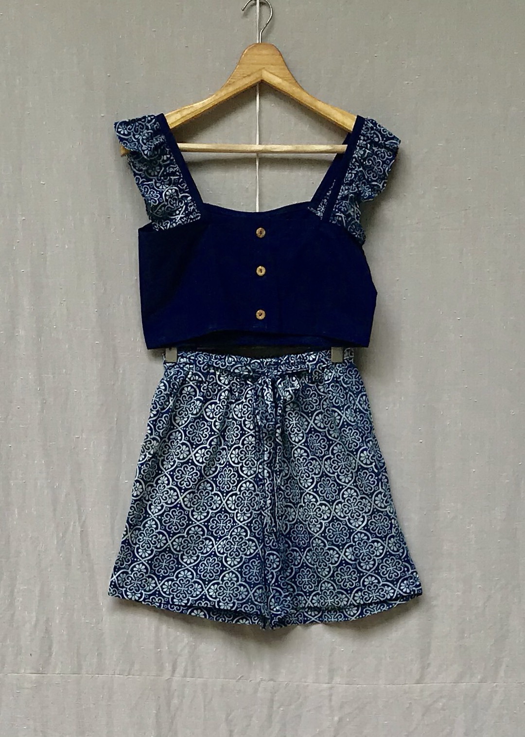 ชื่อผลิตภัณฑ์ Product : ชุดลำลองสตรีขาสั้นลายพิมพ์ผ้าหม้อห้อม (Women Short)